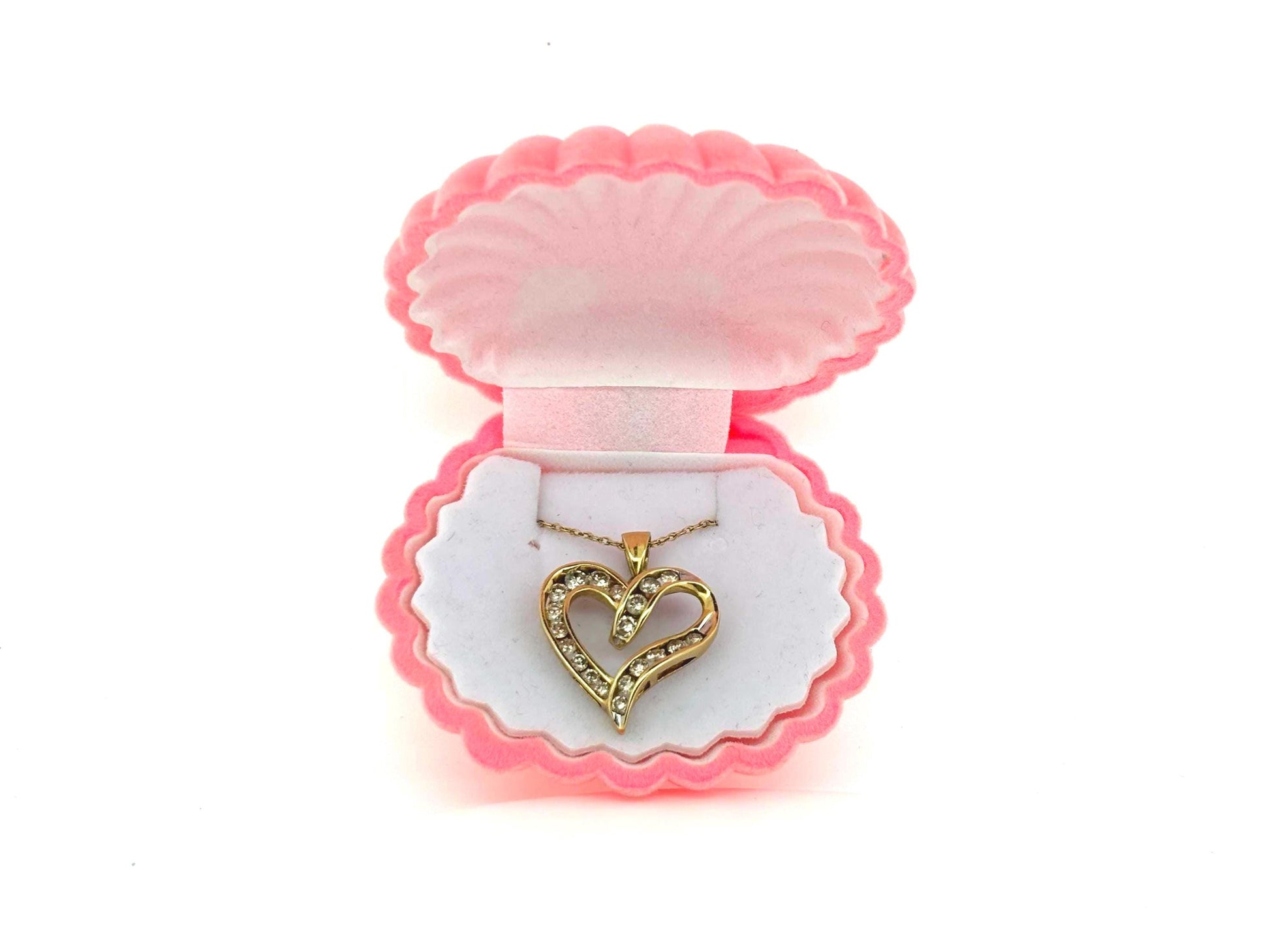 * Design: Open heart with pave-set diamonds