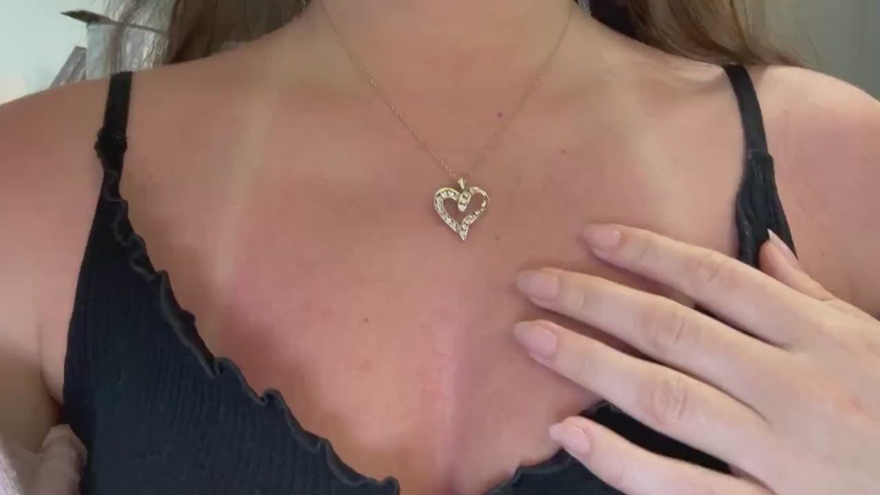 10K Solid Gold Diamond Heart Pendant Heart Necklace Diamond Necklace Diamond Pendant Fine Jewelry, Gift for Her, Dainty Gold Necklace Charm