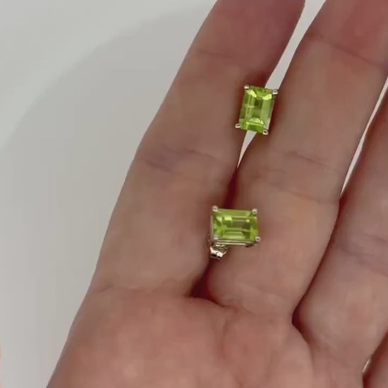 14K Gold Green Earrings Peridot Earrings Peridot Studs Princess Cut Hawaiian Diamond Peles Tears - Birthday Gift for Her Gift For Mom