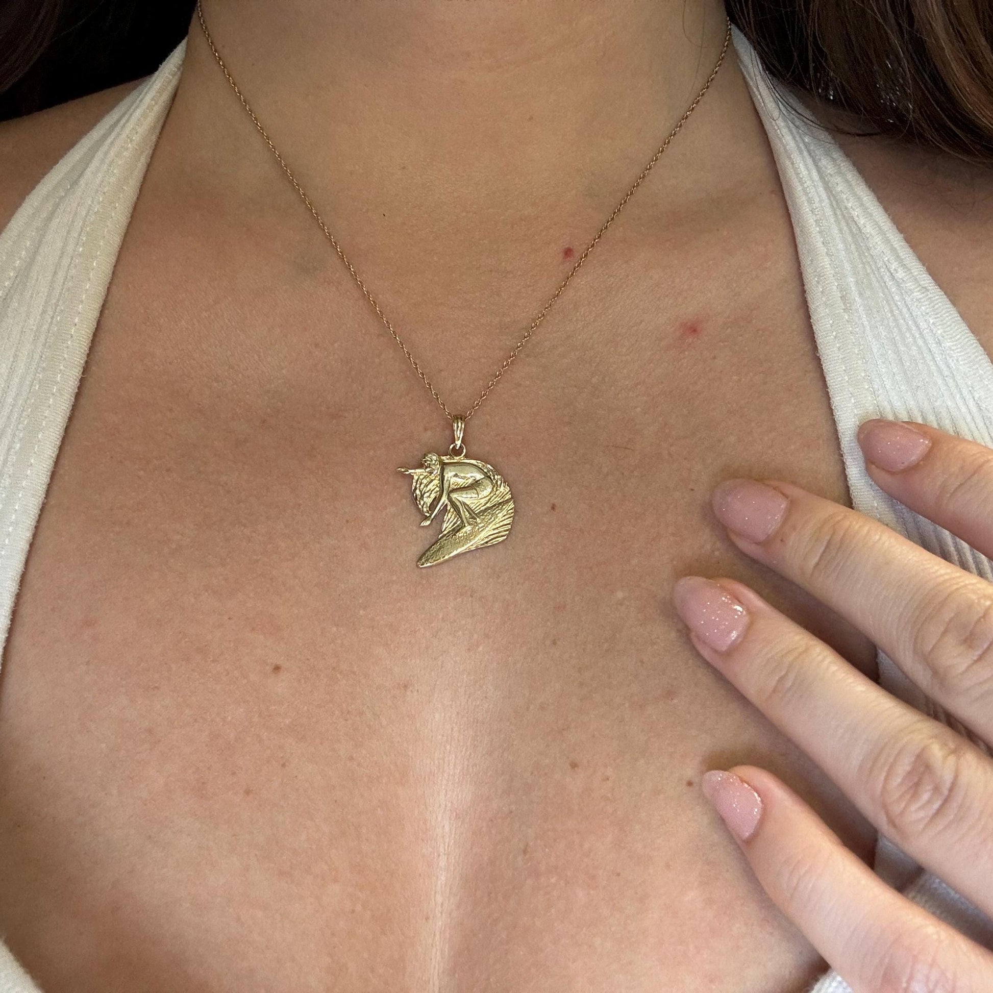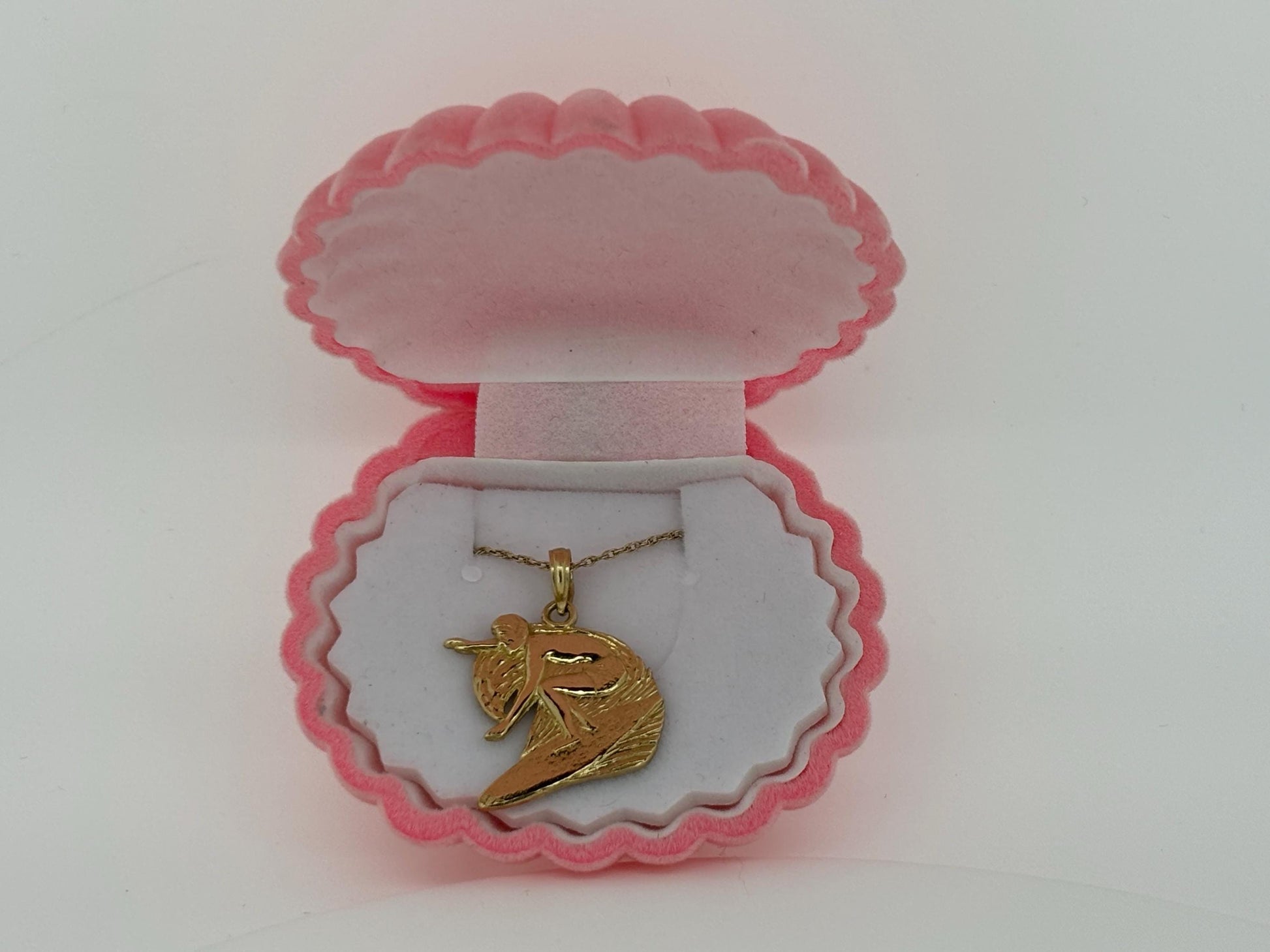 Surfing is more than a sport — it’s a dance with the ocean, a moment of fearless balance, and a tribute to nature’s rhythm. This 14K gold surfer pendant captures that spirit, symbolizing freedom, strength, and the pursuit of flow.