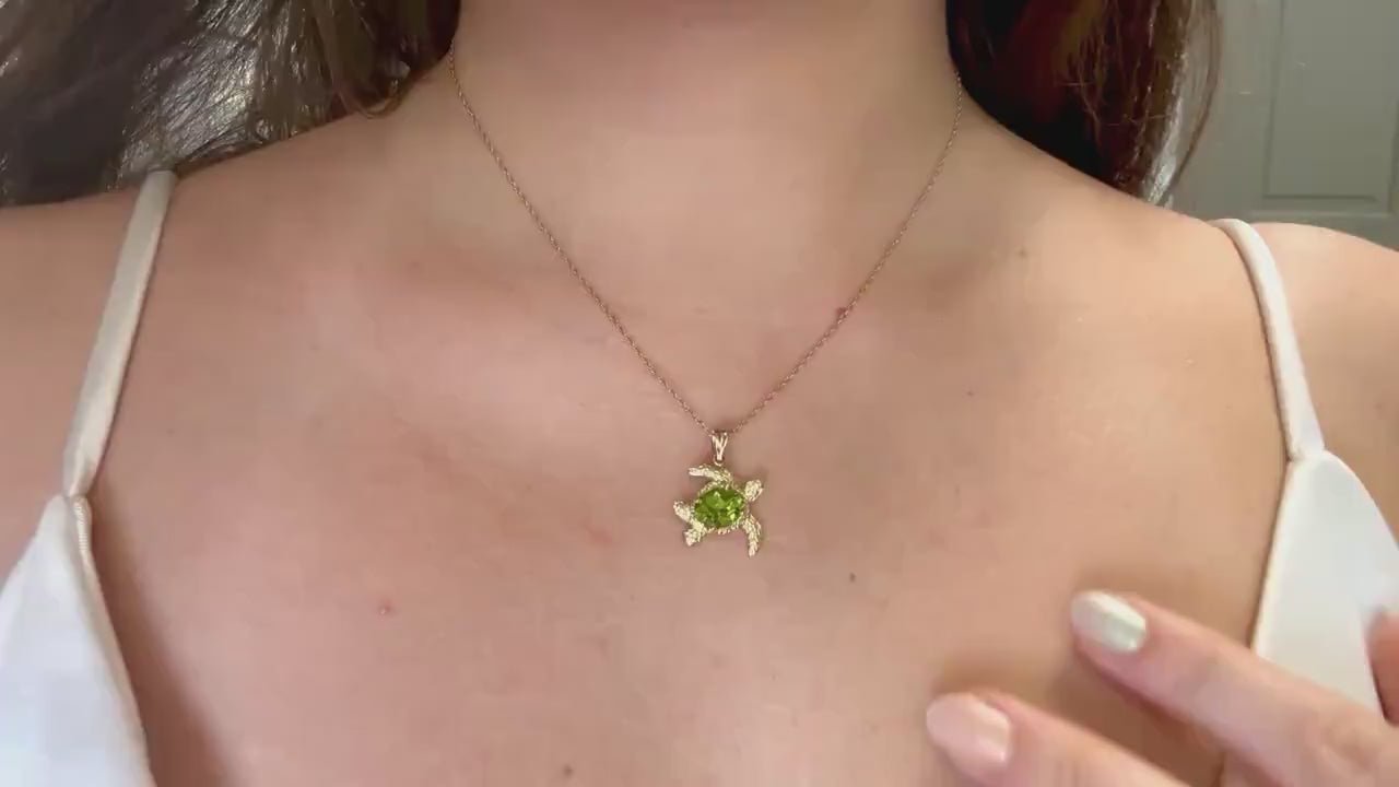 14K Gold Turtle Pendant Peridot Pendant Hawaiian Diamond Peles Tears - Birthday Gift for Her Gift For Mom Turtle Necklace Peridot Necklace
