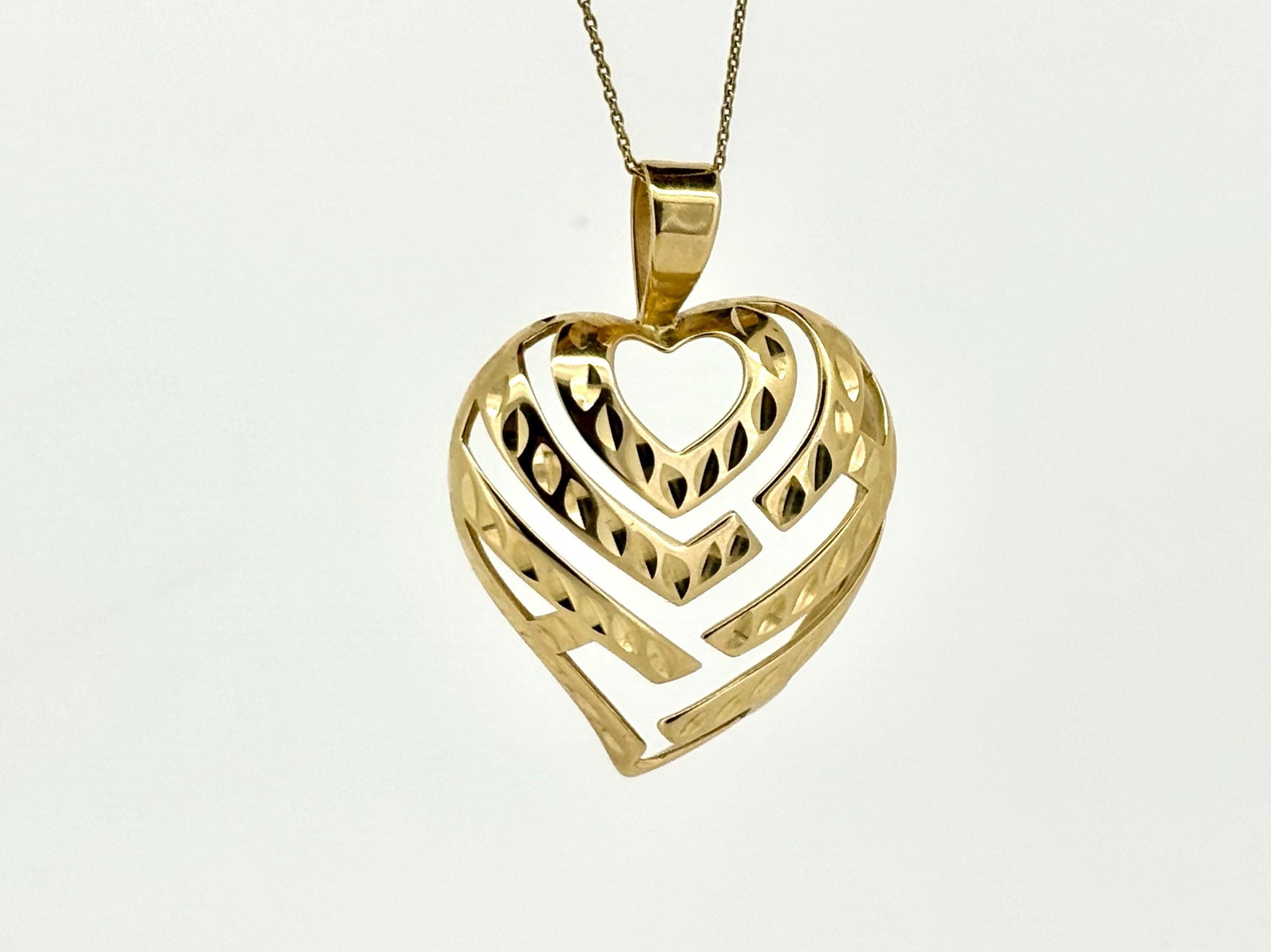 14K Solid Gold Aloha Heart Pendant Heart Necklace Aloha Necklace Aloha Pendant Fine Jewelry, Gift for Her, Dainty Gold Necklace Christmas
