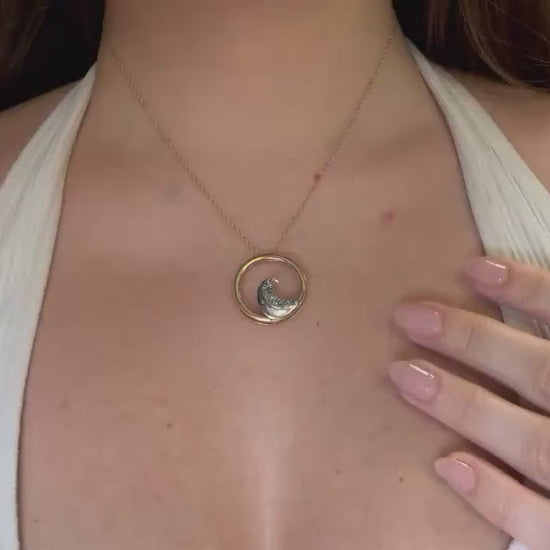 Eternal Wave of Aloha Necklace -14K Two-Tone Gold Blue Diamond Wave Pendant