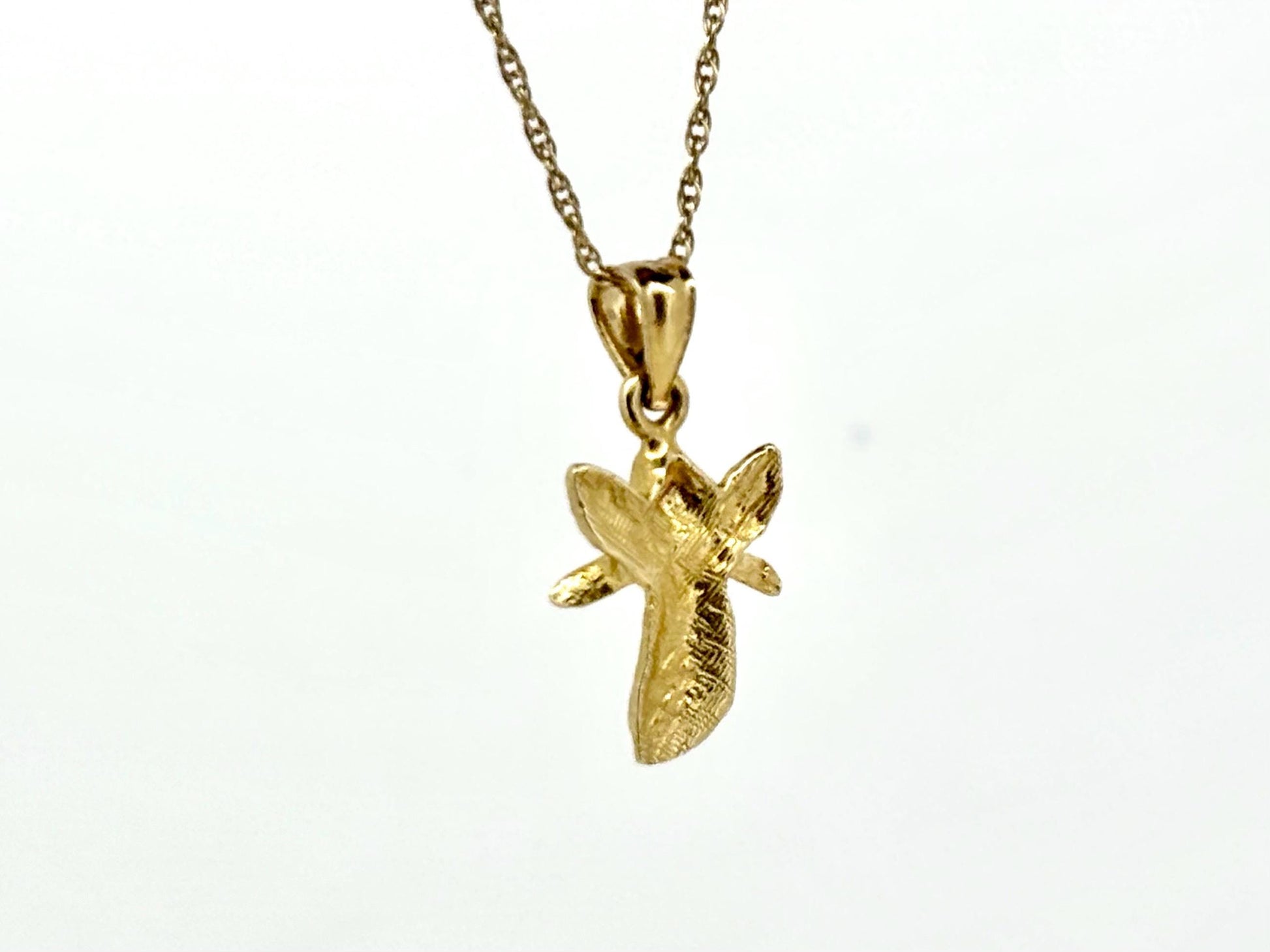 This beautiful 14K Solid Gold pendant width is approximately 0.39 inches (10 millimeters), height is approximately 0.78 inch (20 millimeters) with the bail, It has very beautiful orchid shape. Pendants weight is 1 gr.