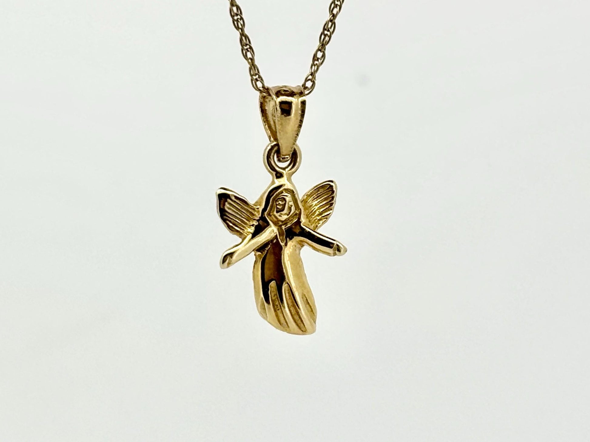 14K Solid Gold Guardian Angel Pendant Loving Angel Necklace Gold Pendant Valentines Gift for her Birtday Gift for Mom Protective Necklace