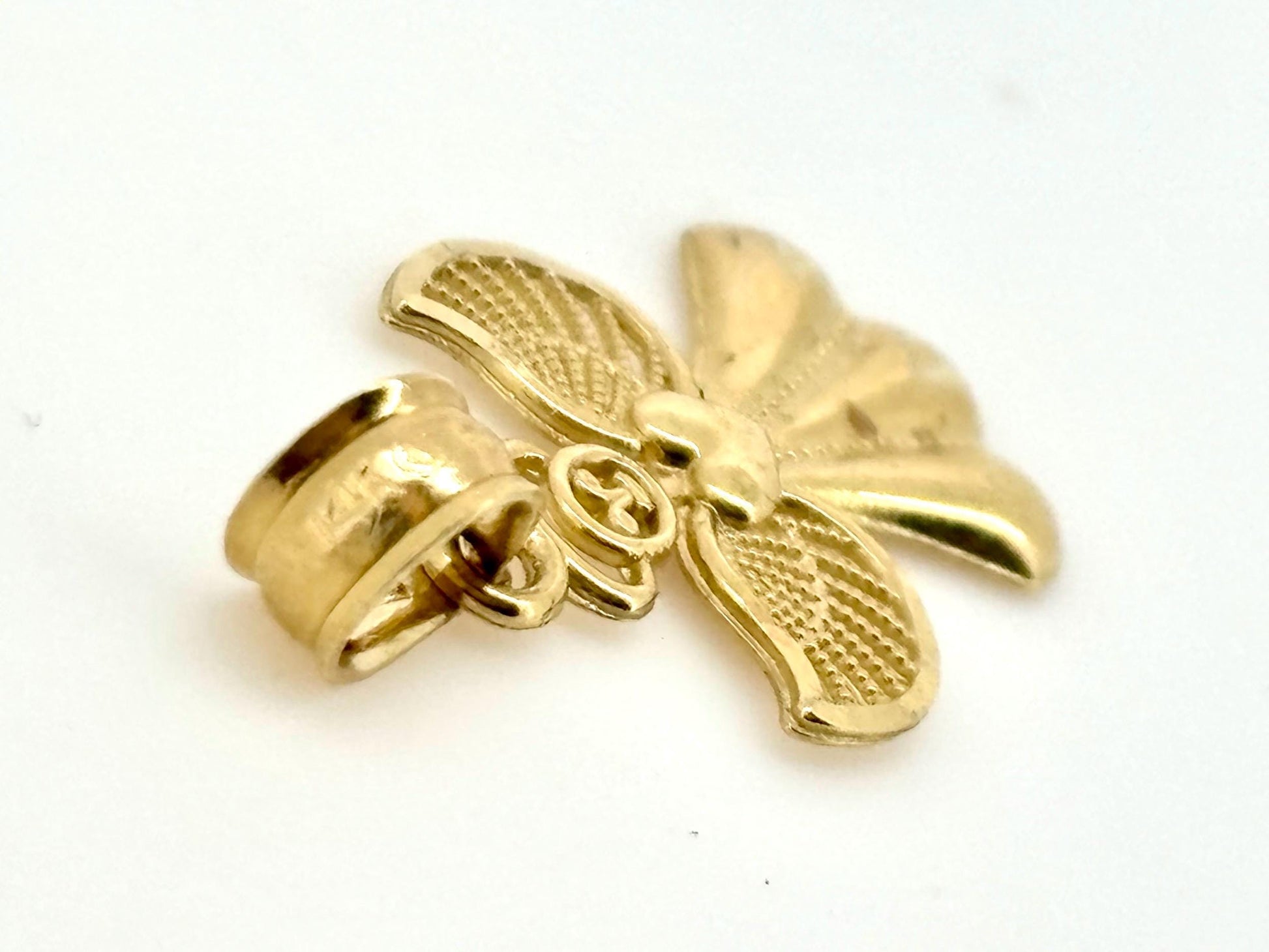 This beautiful 14K Solid Gold pendant width is approximately 0.43 inches (11 millimeters), height is approximately 0.74 inch (19 millimeters) with the bail, It has very beautiful orchid shape. Pendants weight is 0.52 gr.