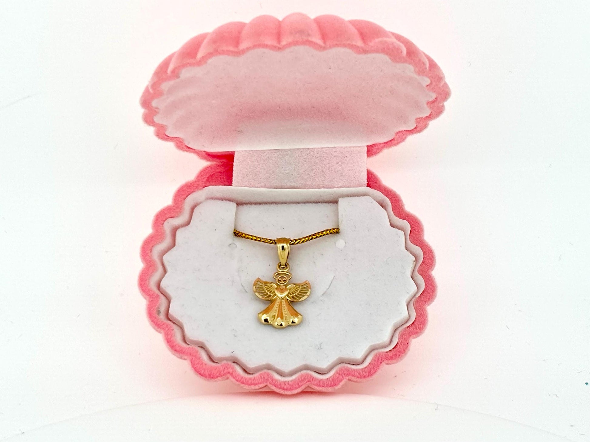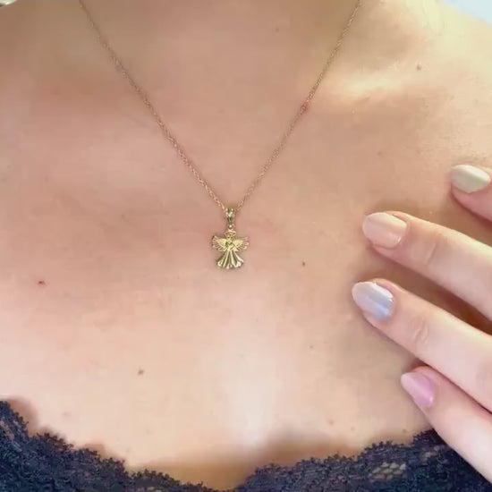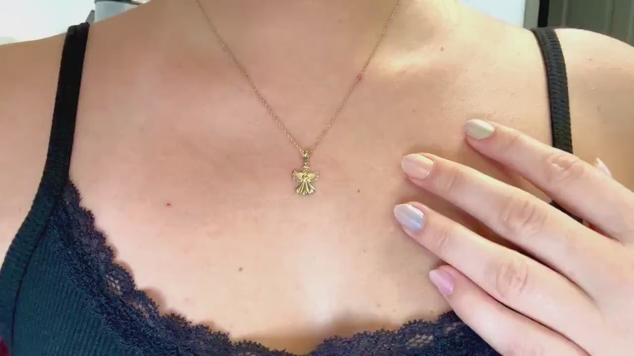 14K Solid Gold Guardian Angel Pendant Loving Angel Necklace Gold Pendant Valentines Gift for her Birtday Gift for Mom Protective Necklace