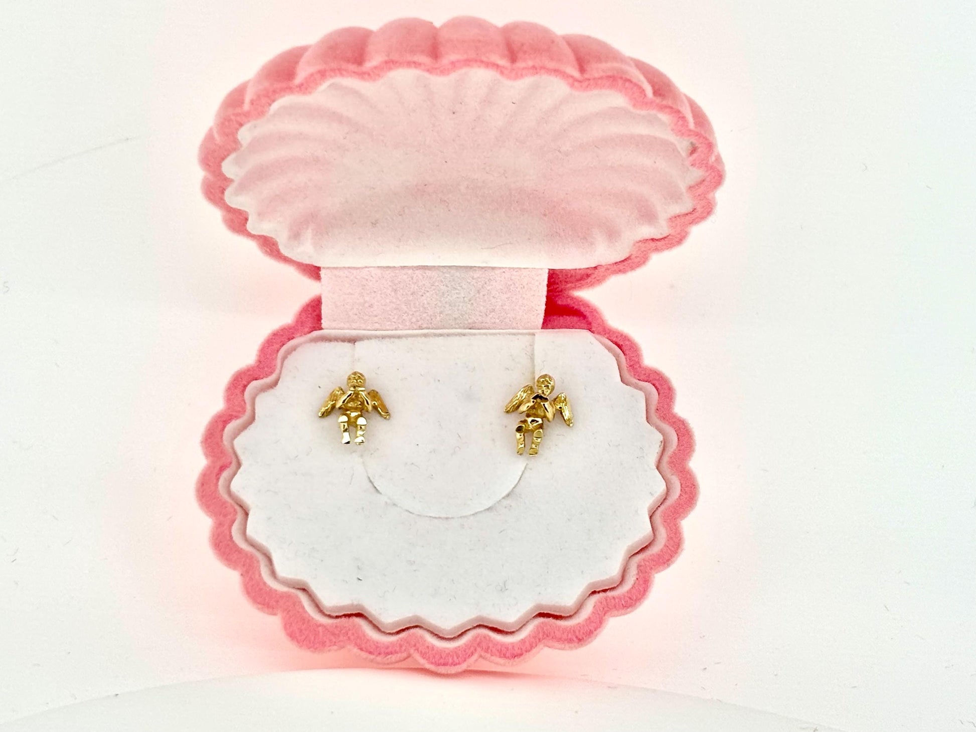 14K Solid Gold Guardian Angel Stud Earrings Loving Angel Earrings Gold Earring Valentines Gift for her Birtday Gift for Mom Protective Studs