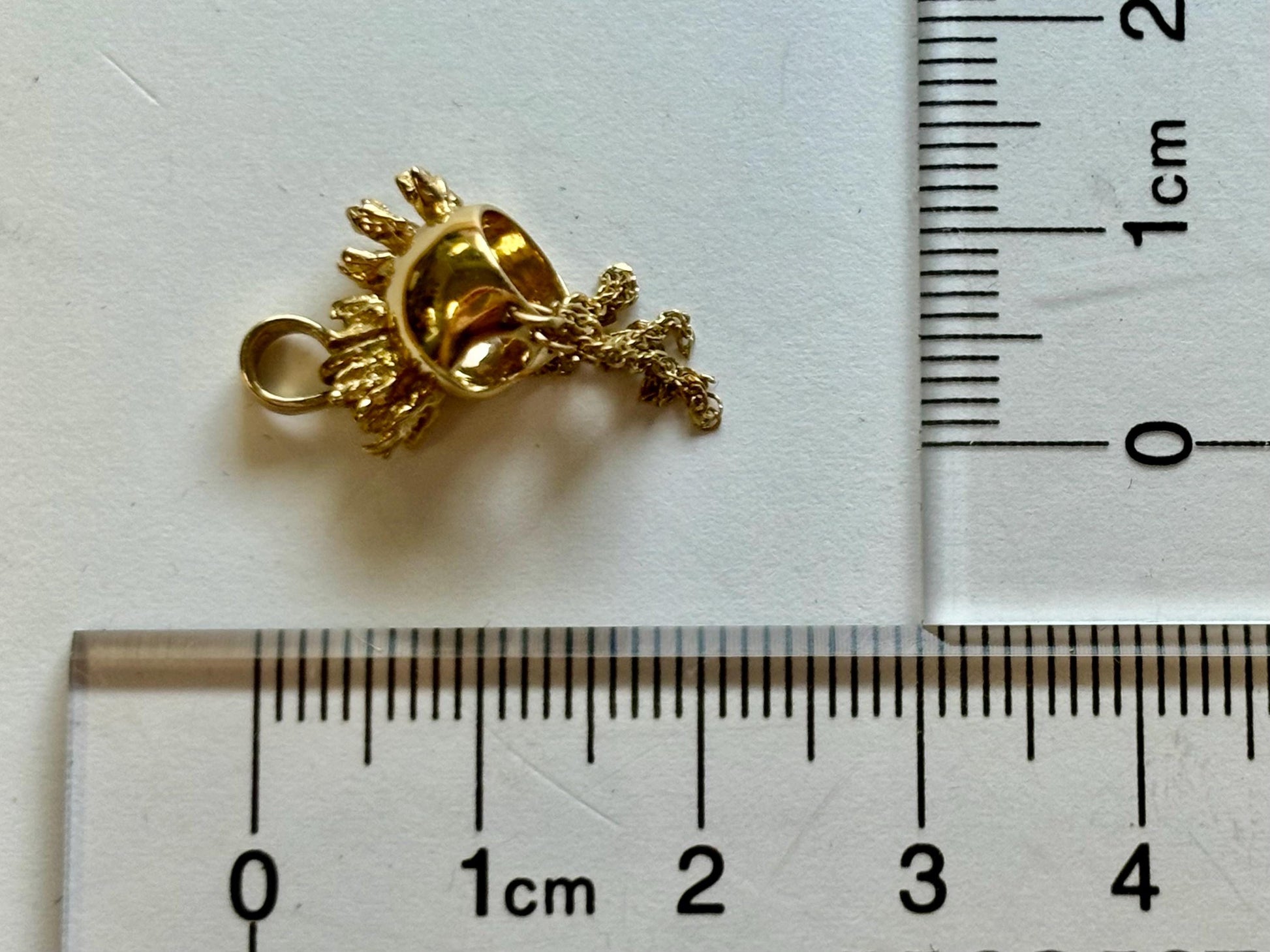 This beautiful 14K Solid Gold pendant width is approximately 0.78 inches (20 millimeters), height is approximately 0.51 inch (13 millimeters), It has very beautiful ikaika sign shape. Pendant weight is 2.2 gr.