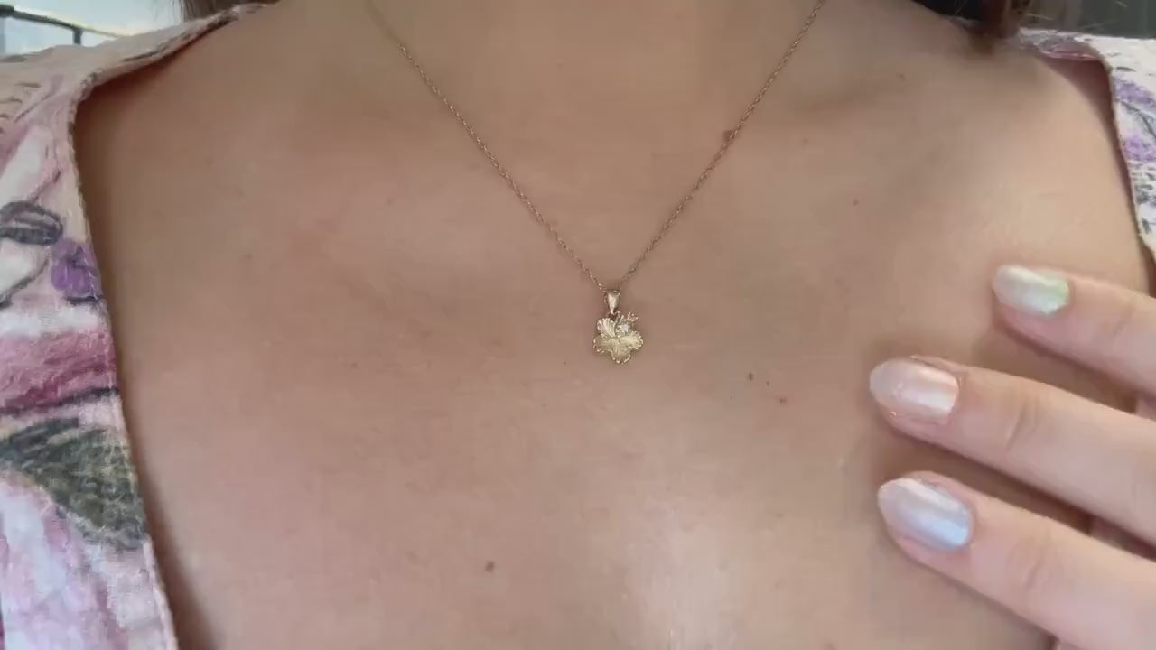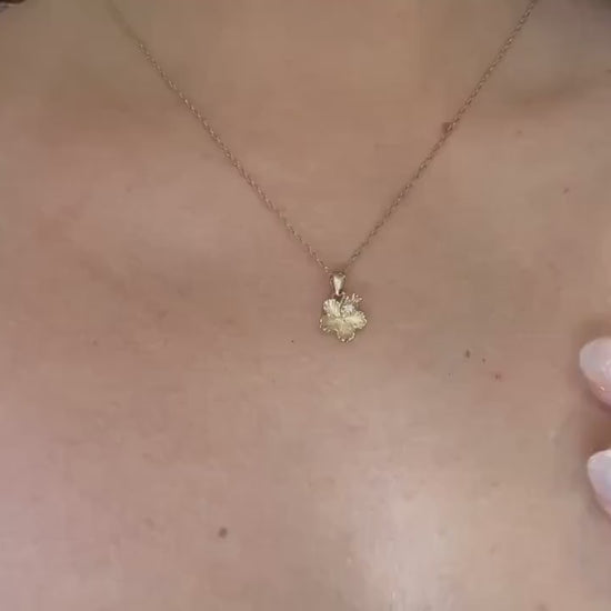 14K Solid Gold Hibiscus Pendant Flower Pendant 0.2 Ct Diamond Necklace Gold Pendant Birthday Gift for her Gift for Mom Flower Necklace
