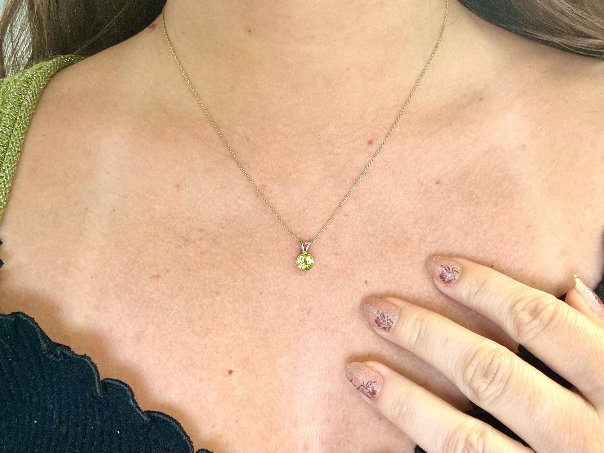 14K Solid Gold Necklace Peridot Pendant Hawaiian Diamond Peles Tears - Birthday Gift for Her Gift For Mom Green Necklace Peridot Necklace