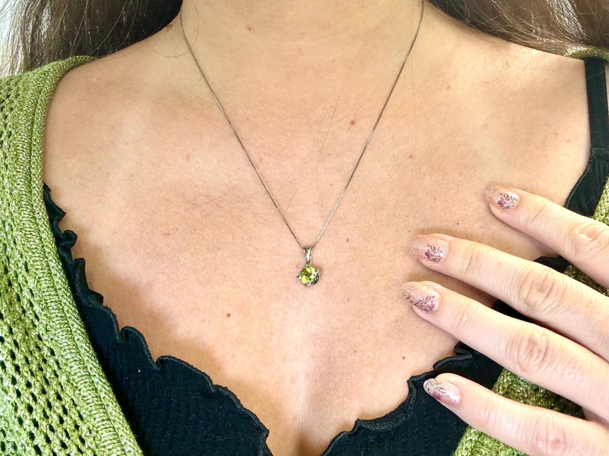 14K Solid Gold Necklace Peridot Pendant Hawaiian Diamond Peles Tears - Birthday Gift for Her Gift For Mom Green Necklace Peridot Necklace