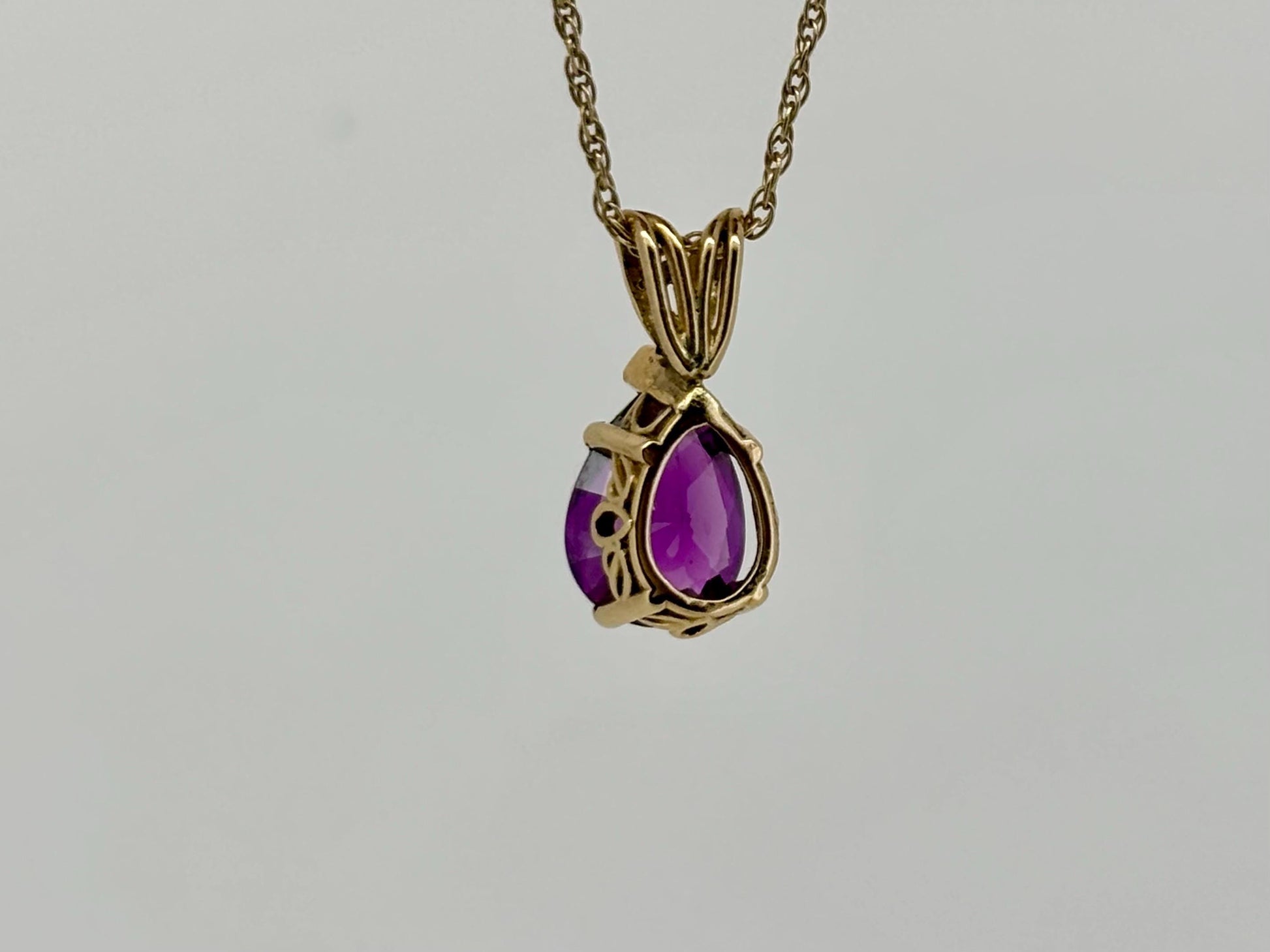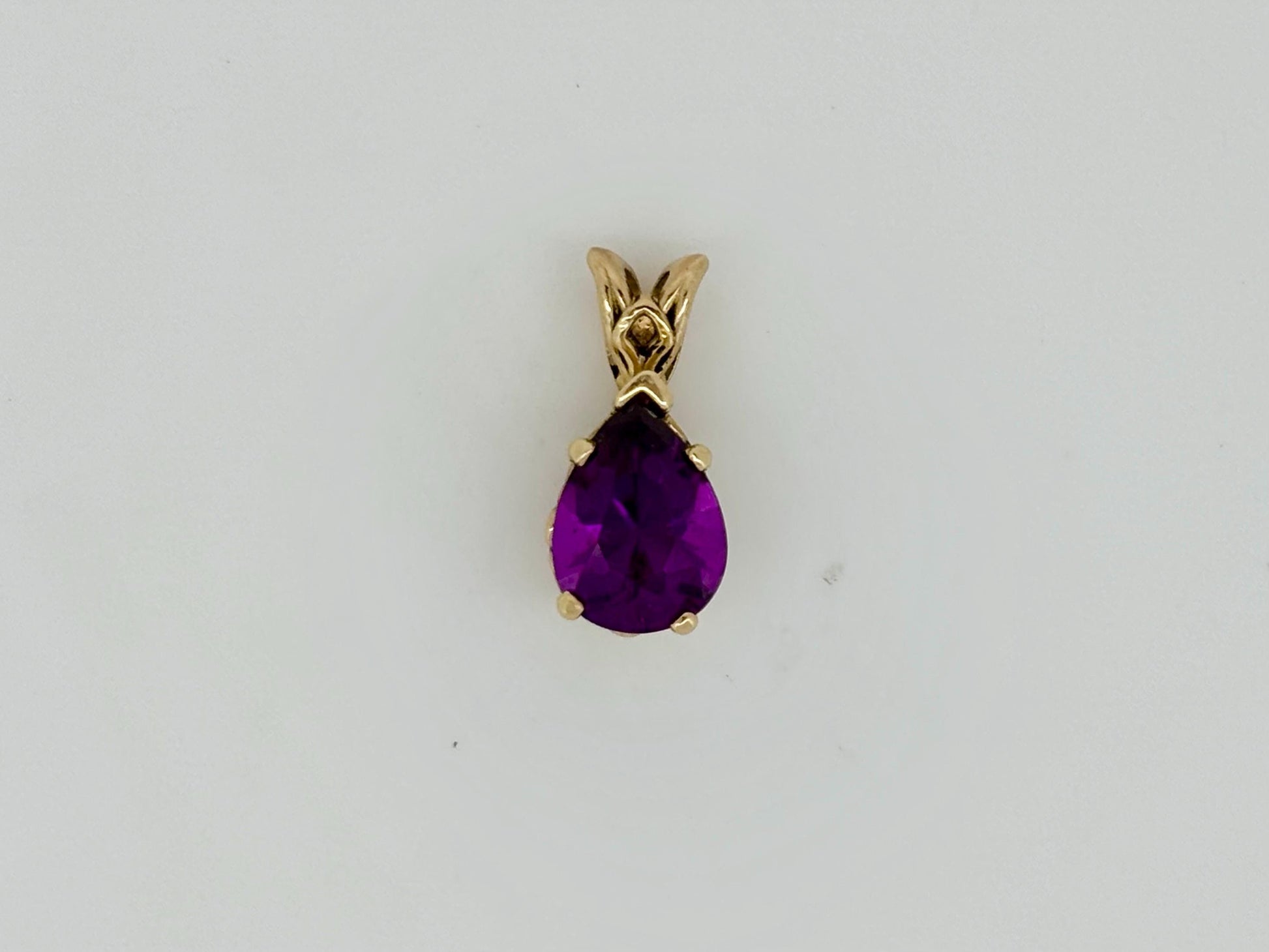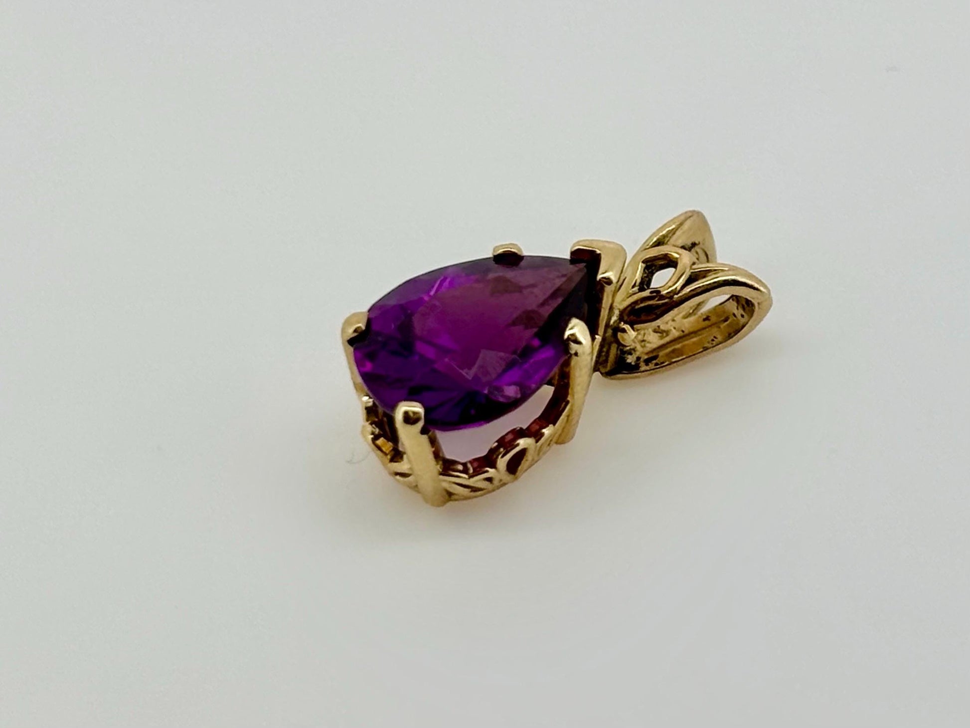 This handcrafted 14K yellow gold pendant features a stunning 1.87 carat grape garnet. The pendant measures approximately 15 mm (1.5 cm) in height and 7 mm in width. Weight is 1.4 gr. A bold yet elegant piece, it’s perfect for everyday elegance or meaningful gifting.