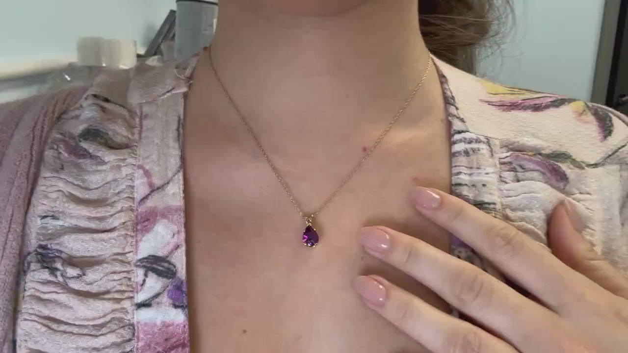 14K Solid Gold Necklace Red Violet Garnet Pendant Garnet Necklace- Genuine January Birthstone Jewelry, Birthday Gift for Her Purple Pendant