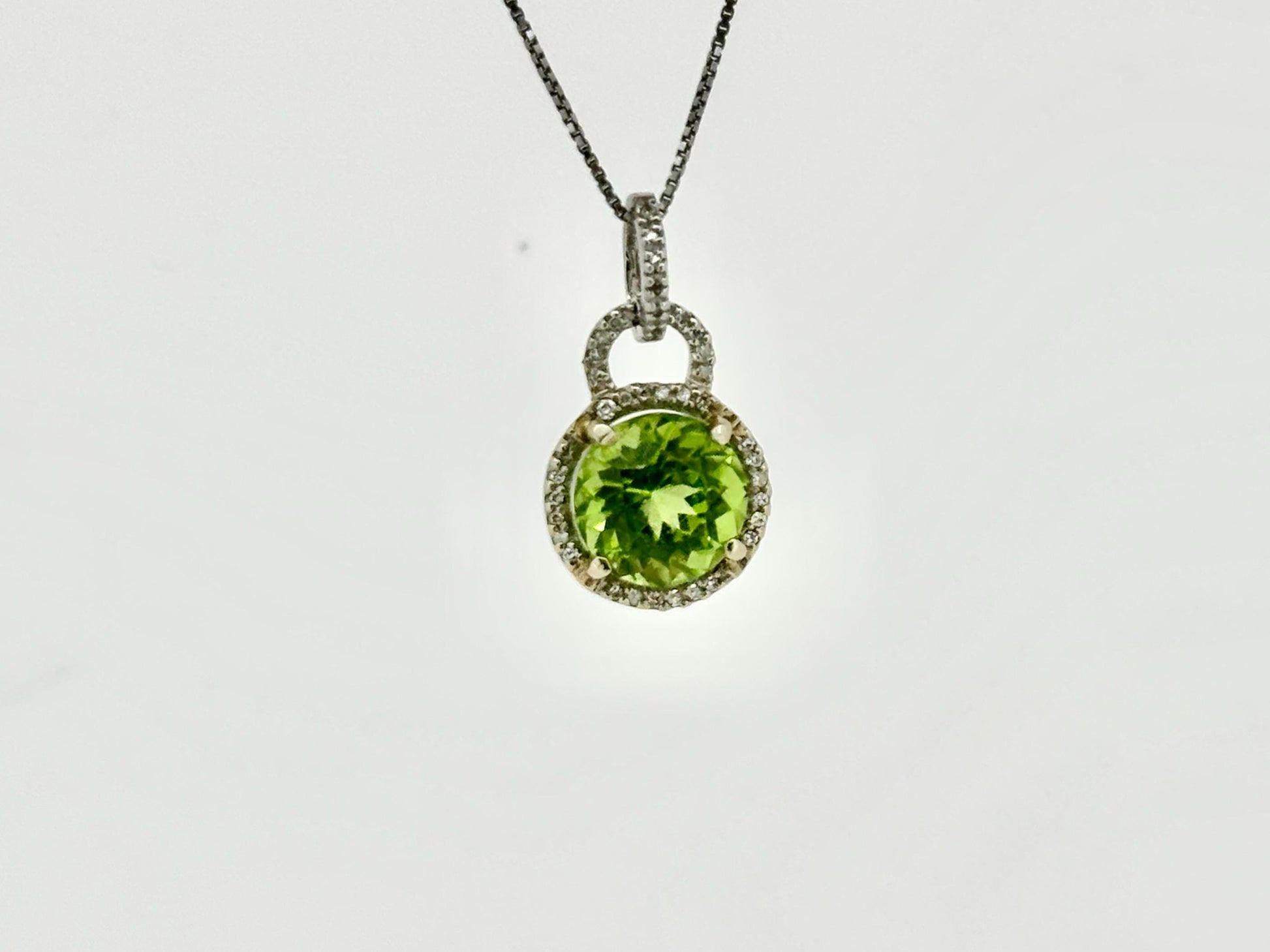 Design: Crafted in 14k solid gold, this elegant pendant features a genuine peridot accented with brilliant diamonds. Its polished finish enhances the natural beauty and glow of the stones, creating a timeless piece filled with meaning and light.