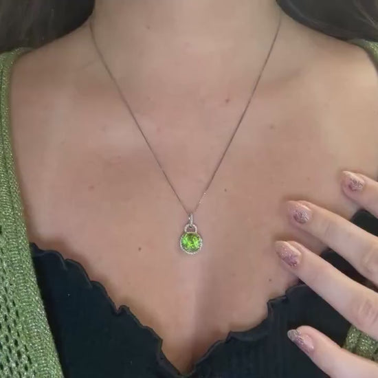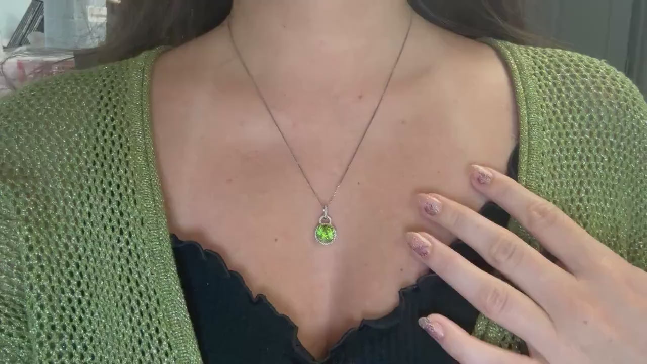 In Hawaiian legend, peridot is known as the tears of Pele, the volcano goddess who embodies fire, creation, and transformation. This luminous green stone symbolizes abundance, love, and protection — a radiant reminder of the island’s life force and renewal. Enhanced by sparkling diamonds, this pendant captures the harmony of earth and light. I send it with aloha and blessings, from the heart of the islands to you.