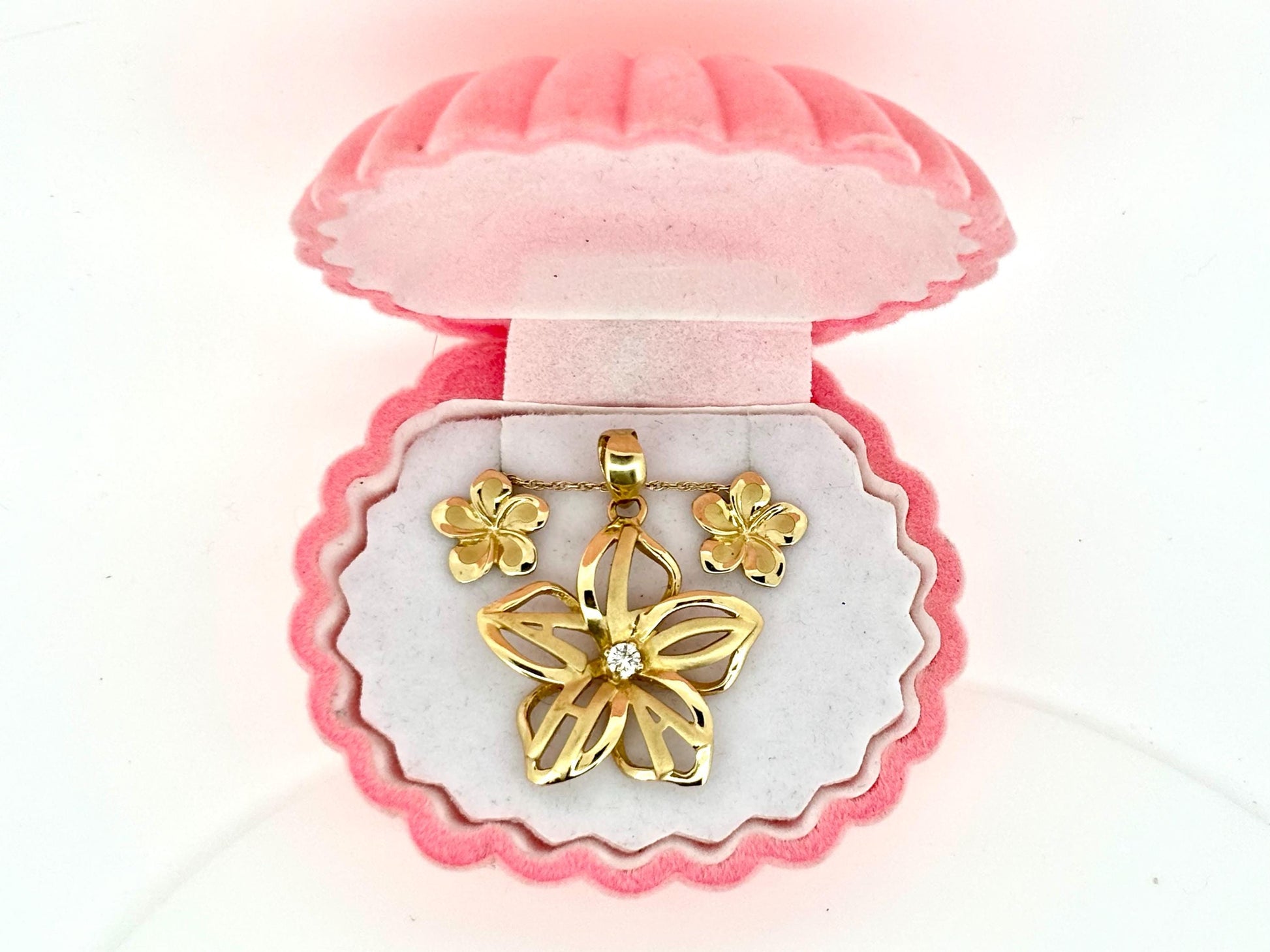 14K Solid Gold Plumeria Aloha Pendant Flower Pendant Necklace Gold Pendant Birthday Gift for her Gift for Mom Flower Necklace Aloha Set