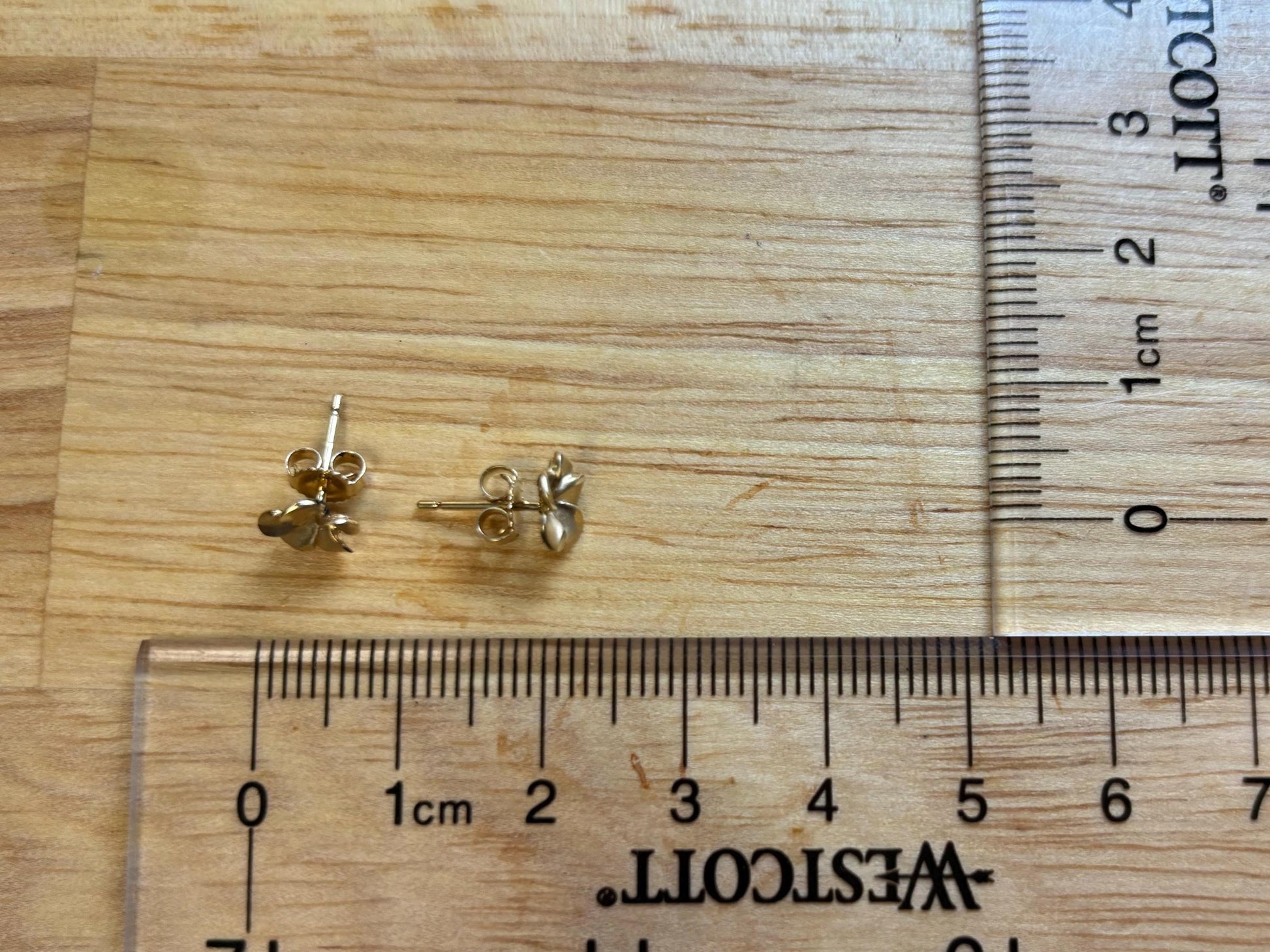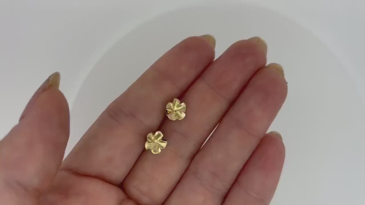 This beautiful 14K Solid Gold earring width is approximately 0.27 inches (7 millimeters), height is approximately 0.47inch (12 millimeters), It has very beautiful plumeria shape. Earrings weight is 0.8gr.