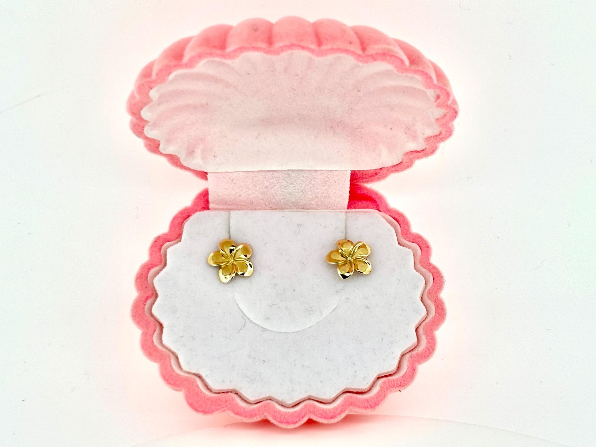 14K Solid Gold Plumeria Flower Studs Gold Earrings Gold Studs Birthday Gift for her Gift for Mom Flower Earrings
