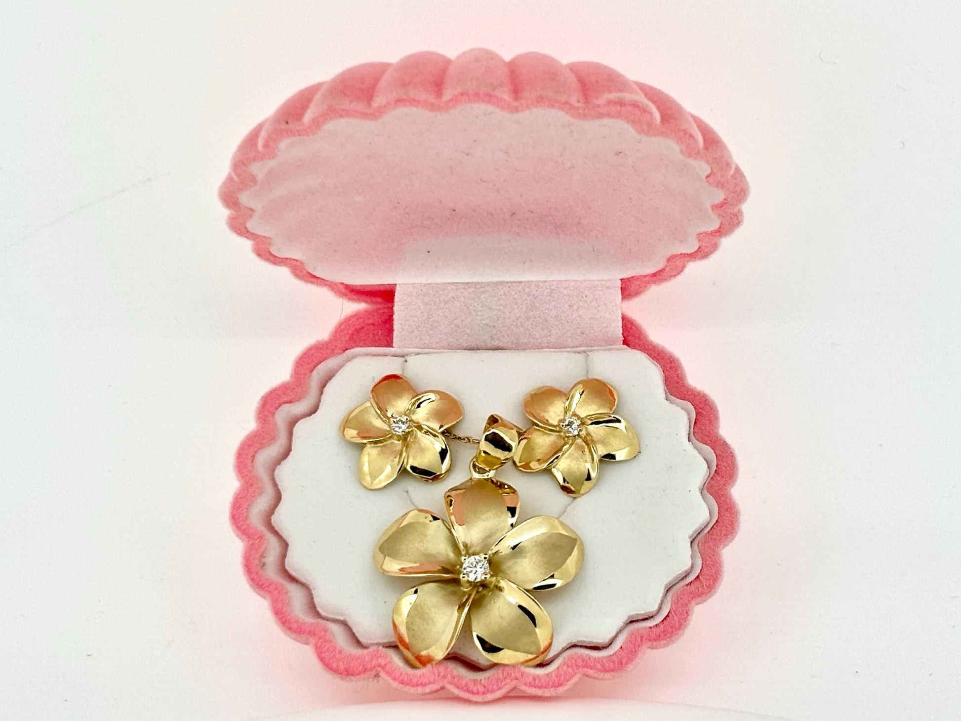 14K Solid Gold Plumeria Pendant Earrings Set Flower Pendant Necklace Gold Pendant Birthday Gift for her Flower Necklace Jewelry Set