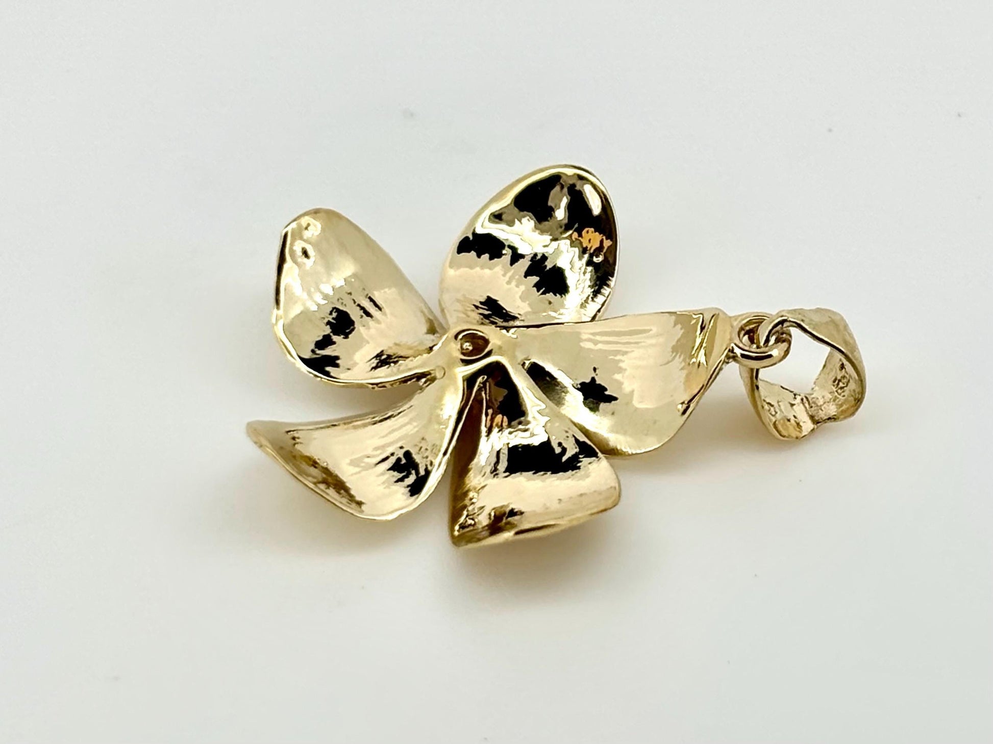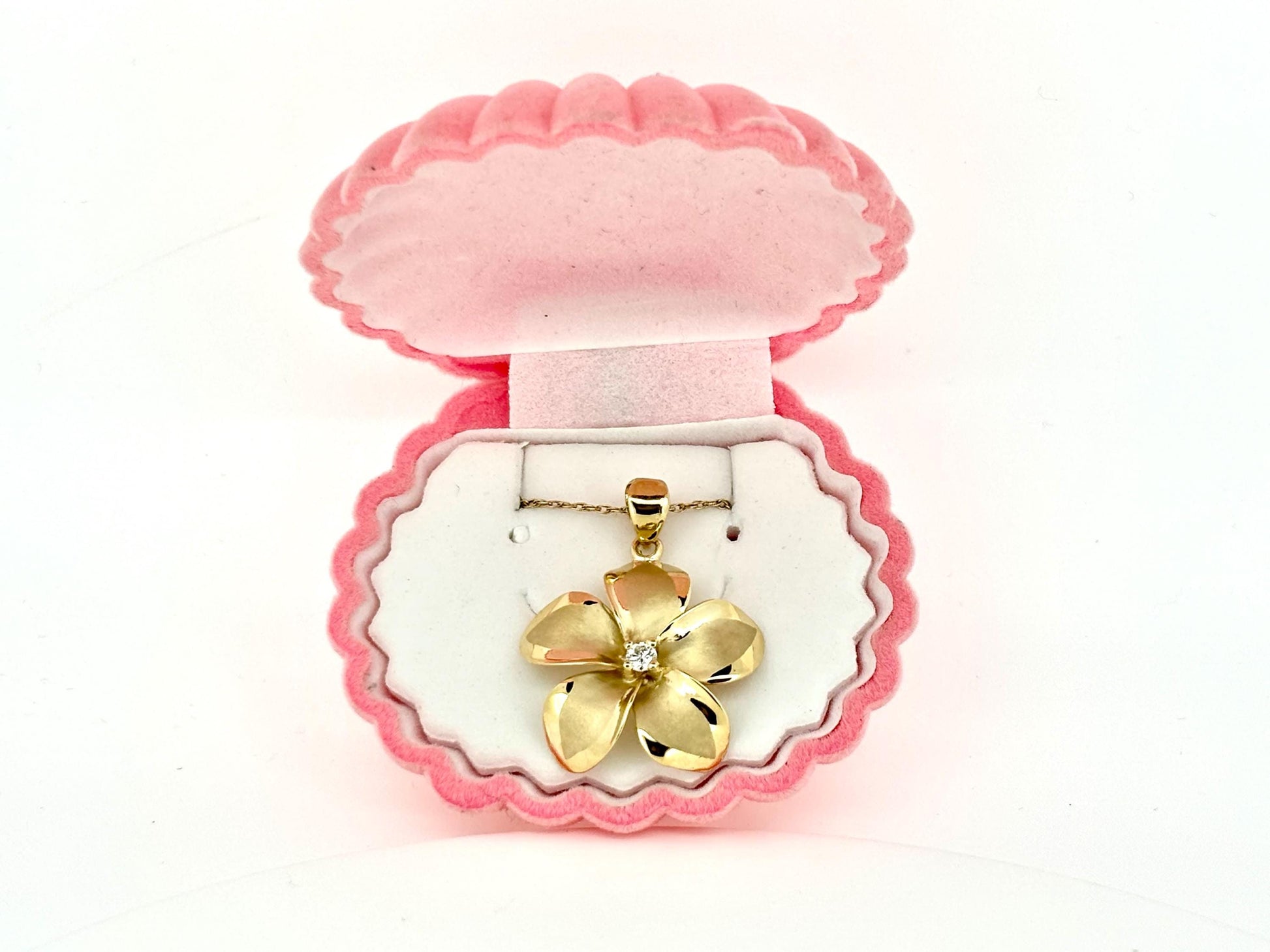 14K Solid Gold Plumeria Pendant Flower Pendant Necklace Gold Pendant Birthday Gift for her Gift for Mom Flower Necklace Diamond Pendant