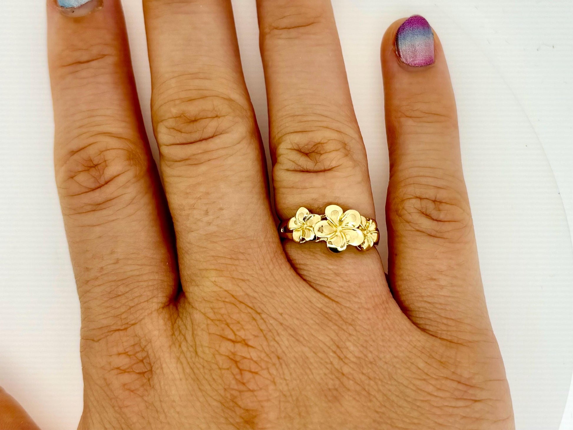 14K Solid Gold Hawaiian Plumeria Flower Ring