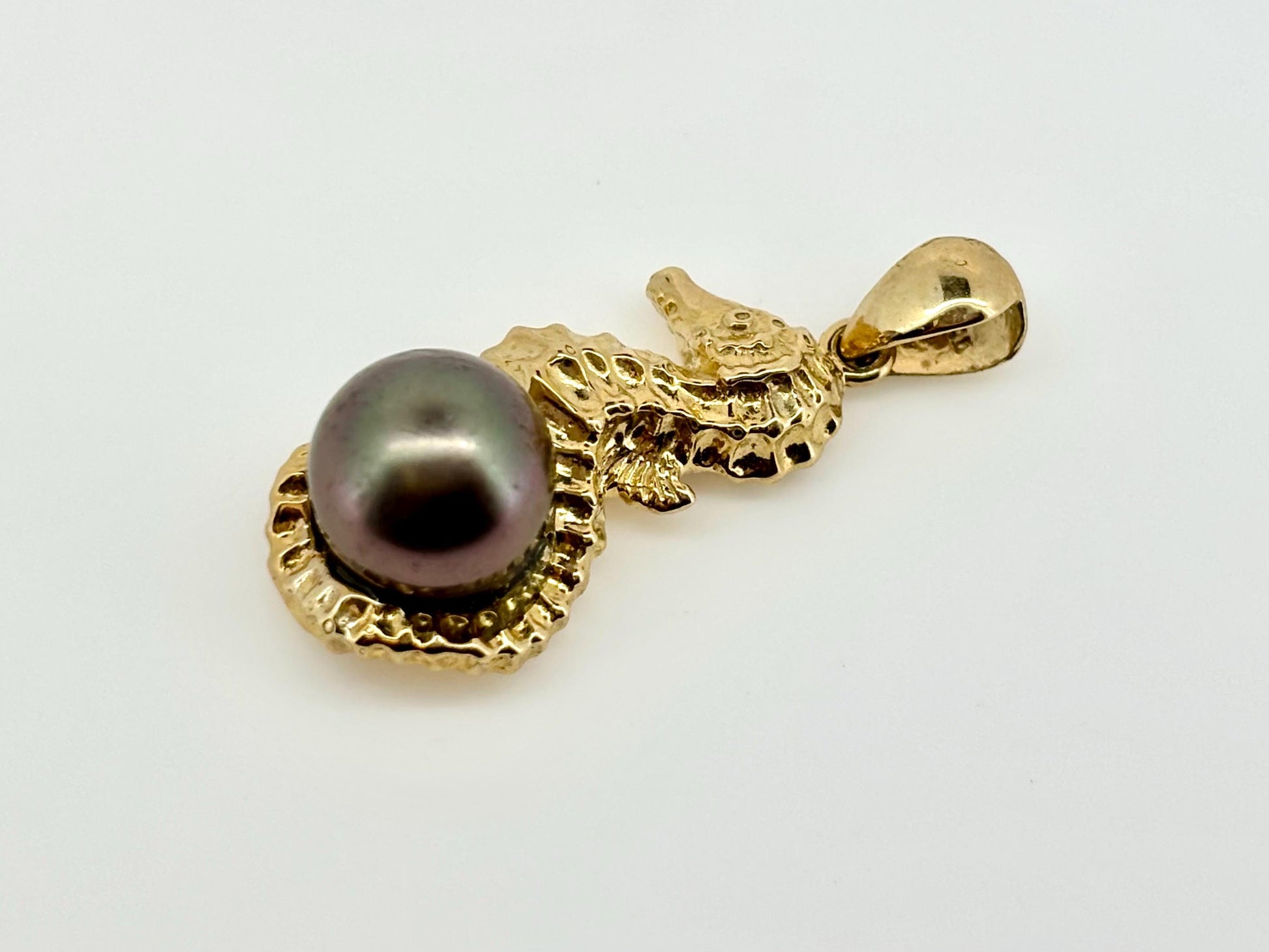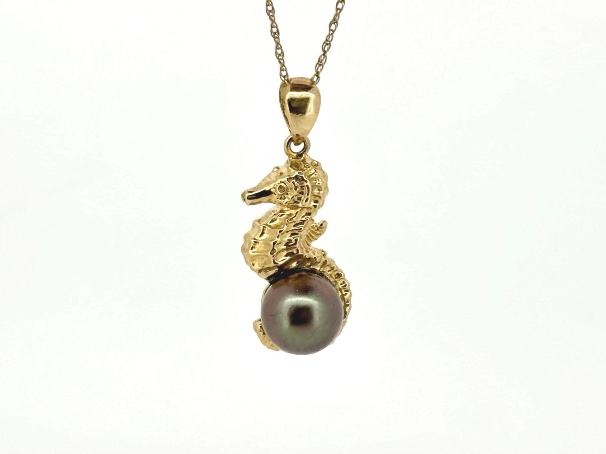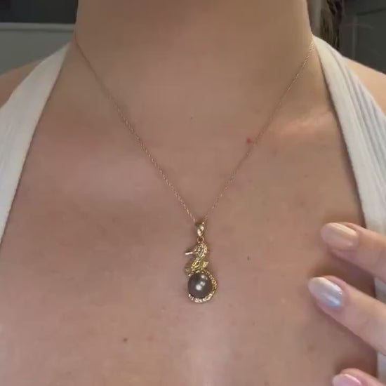 14K Solid Gold Tahitian Pearl Necklace Seahorse Pendant Black Pearl Pendant Seahorse Necklace Birthday Gift For Her Gold Pendant