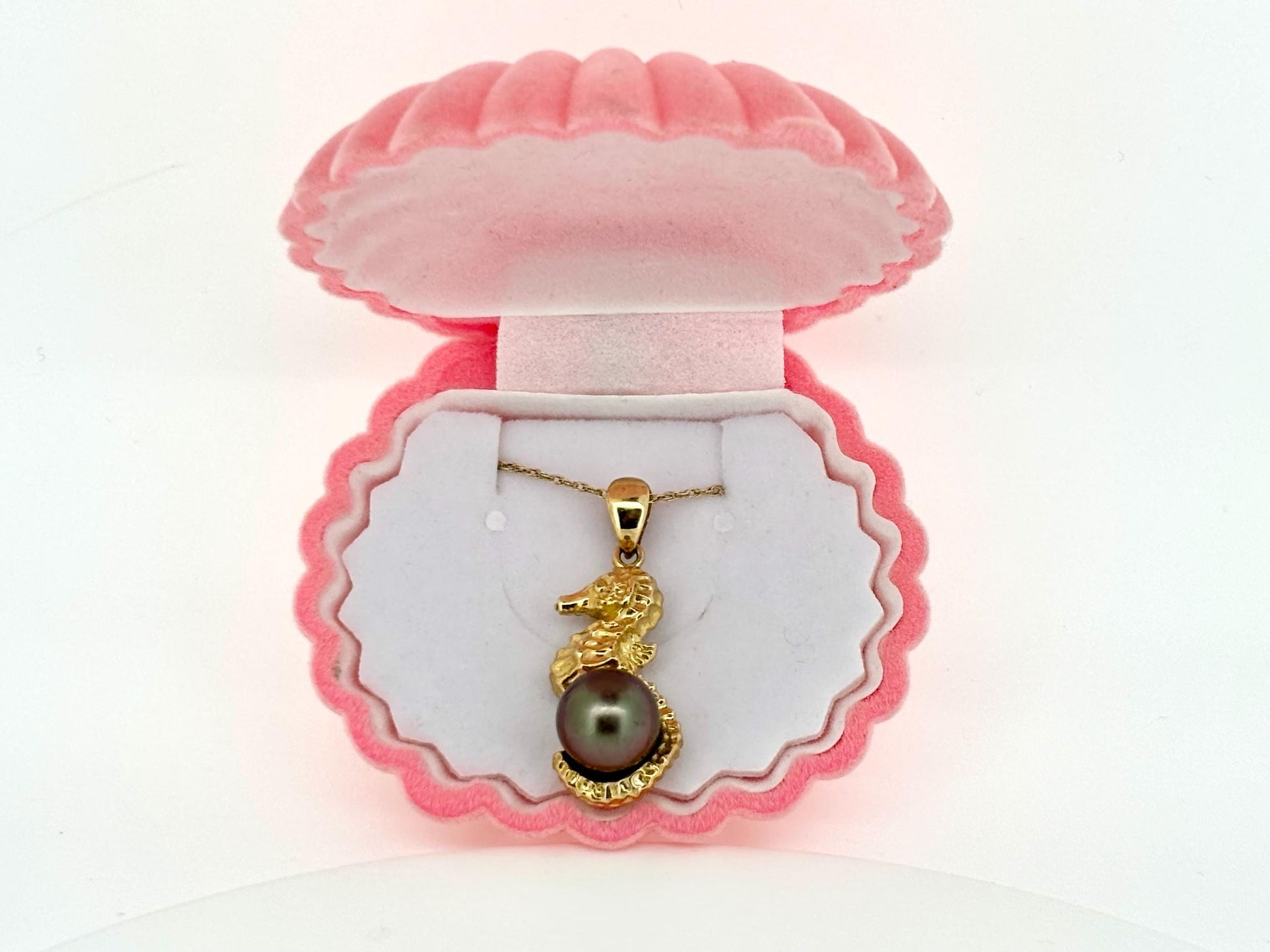 Tahitian black pearls (momi ʻeleʻele) symbolize strength, mystery, and transformation. Their rich, dark luster reflects the beauty of the ocean and the power within. These pearls also represent wisdom, protection, and abundance making them a meaningful gift for life’s bold and beautiful moments. The seahorse, a gentle guardian of the sea, adds a touch of grace, patience, and resilience. I am very happy to send this stunning necklace with my island blessings.