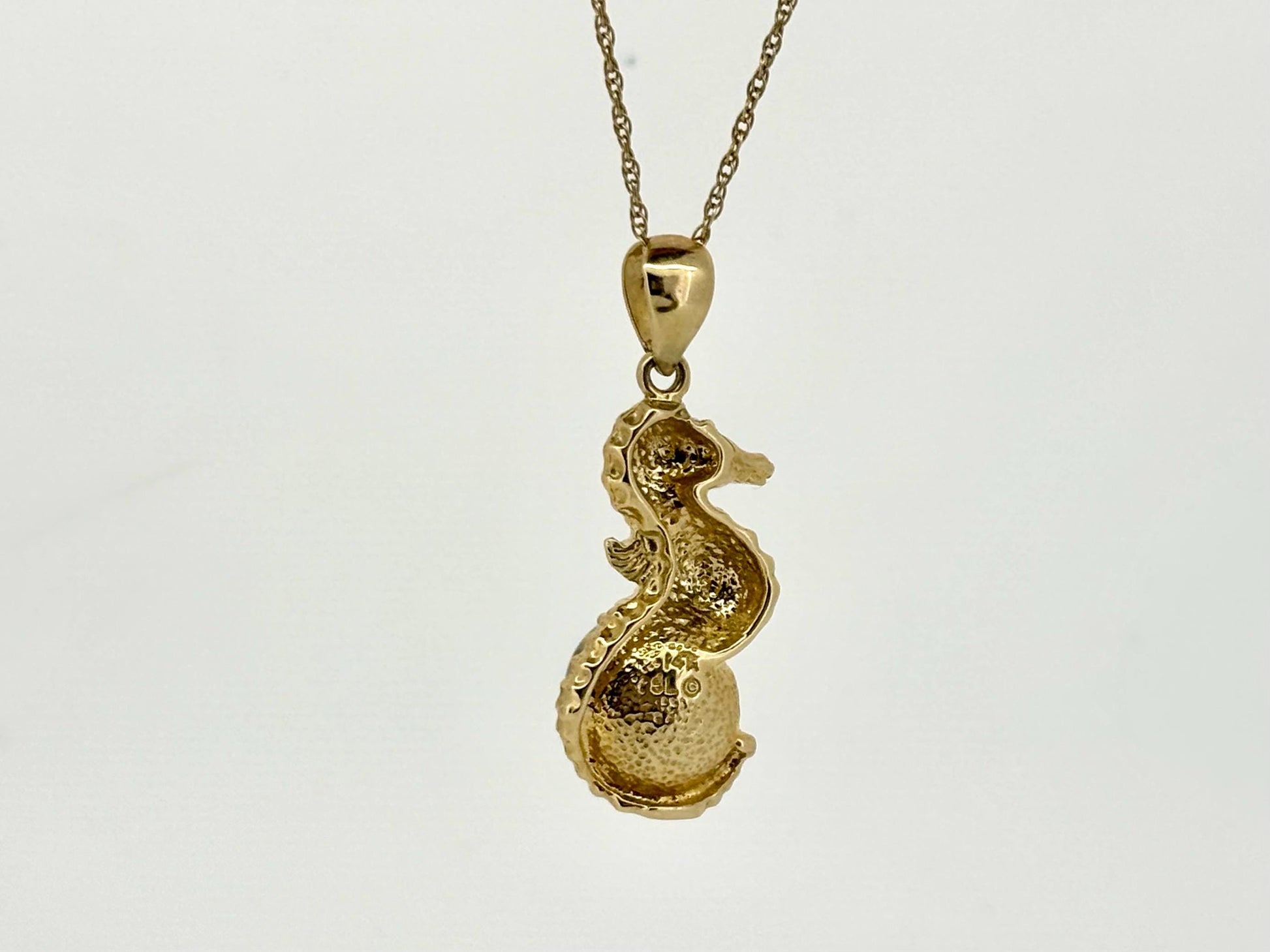 Pendant: 14K solid gold pendant has black Tahitian Pearl and beautiful seahorse shape. Pendant width is approximetly 12 mm (0.47 inches), height is 33 mm (1.29 inches) and weight is 5.5gr.