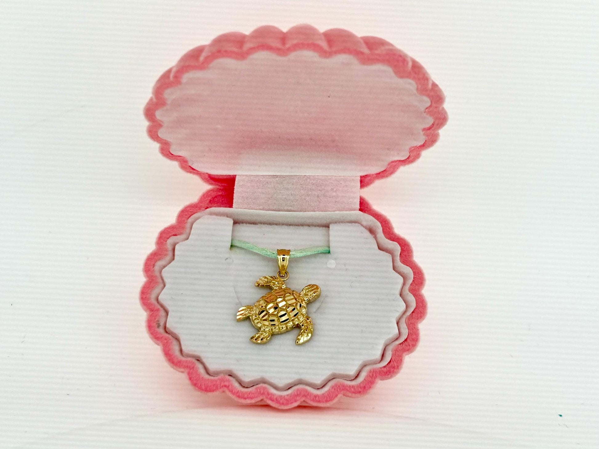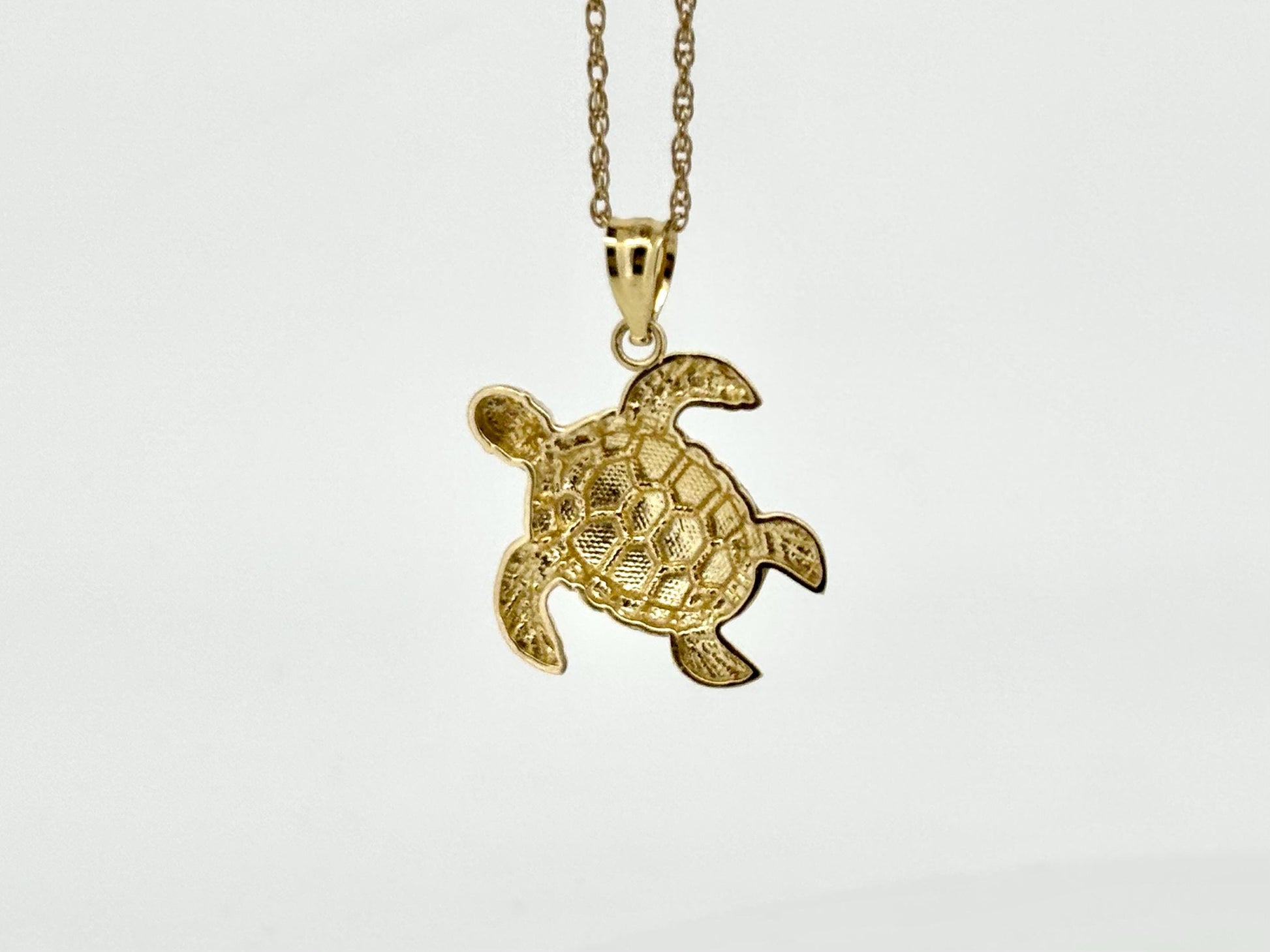 This beautiful 14K gold pendant measures approximately 0.62 inches (16 mm) in width and 0.86 inches (22 mm) in height, weighing about 1.12 grams. Please note: chain is not included.