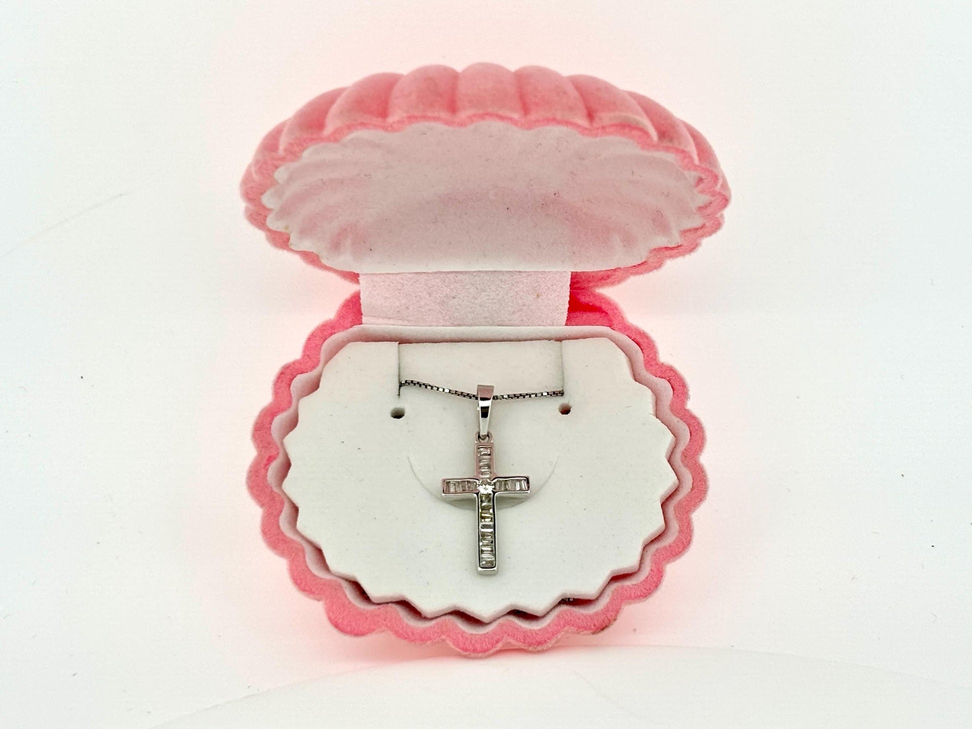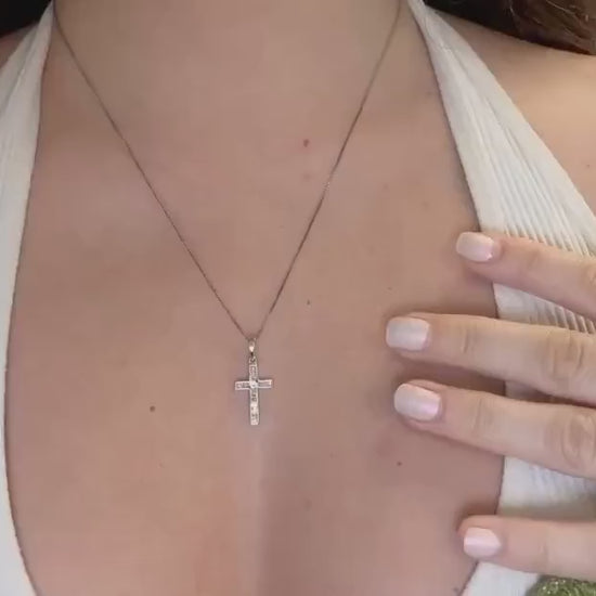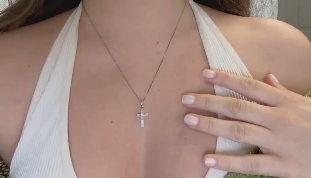 14K Solid White Gold Cross Necklace Jesus Christ Pendant Diamond Cross Christian Gift for her Chritian Gift for Wife Christmas Gift