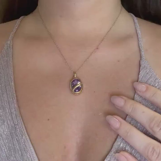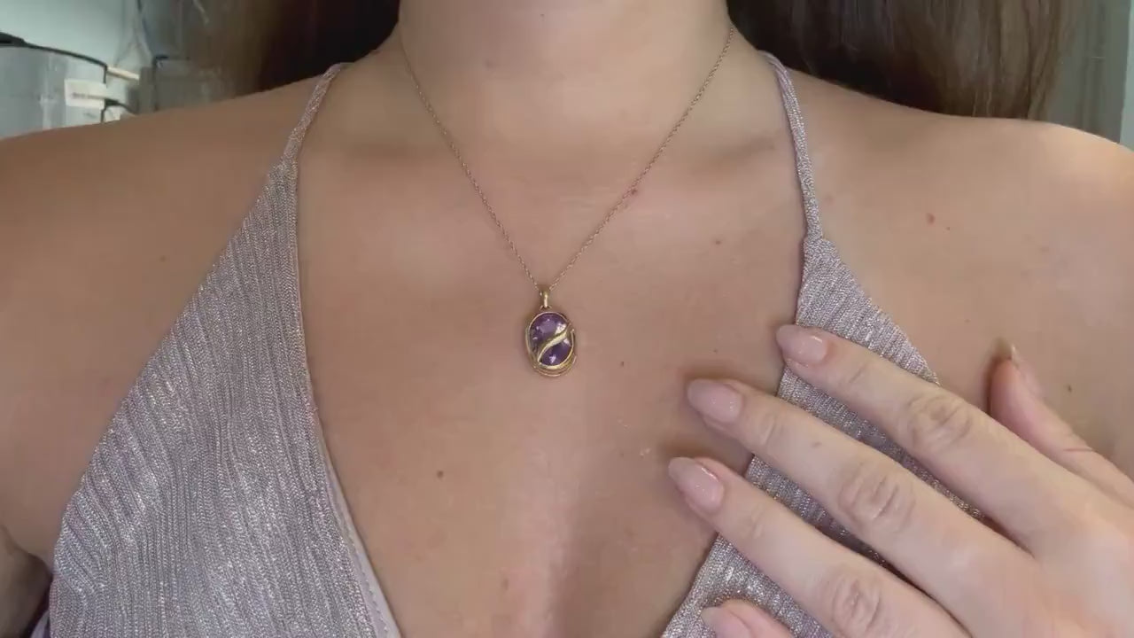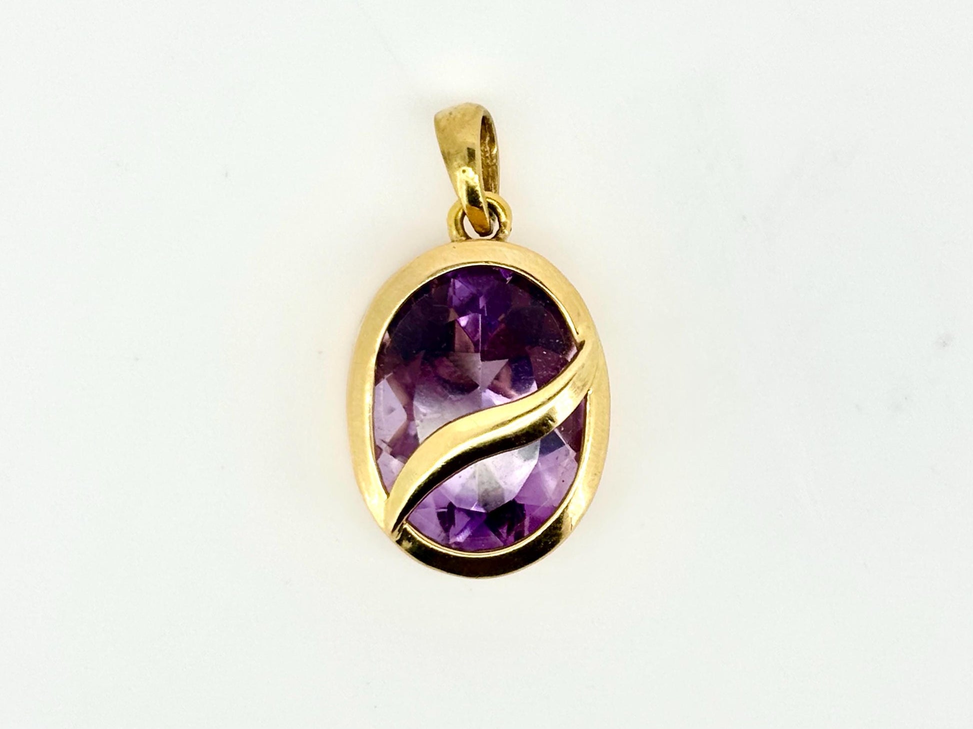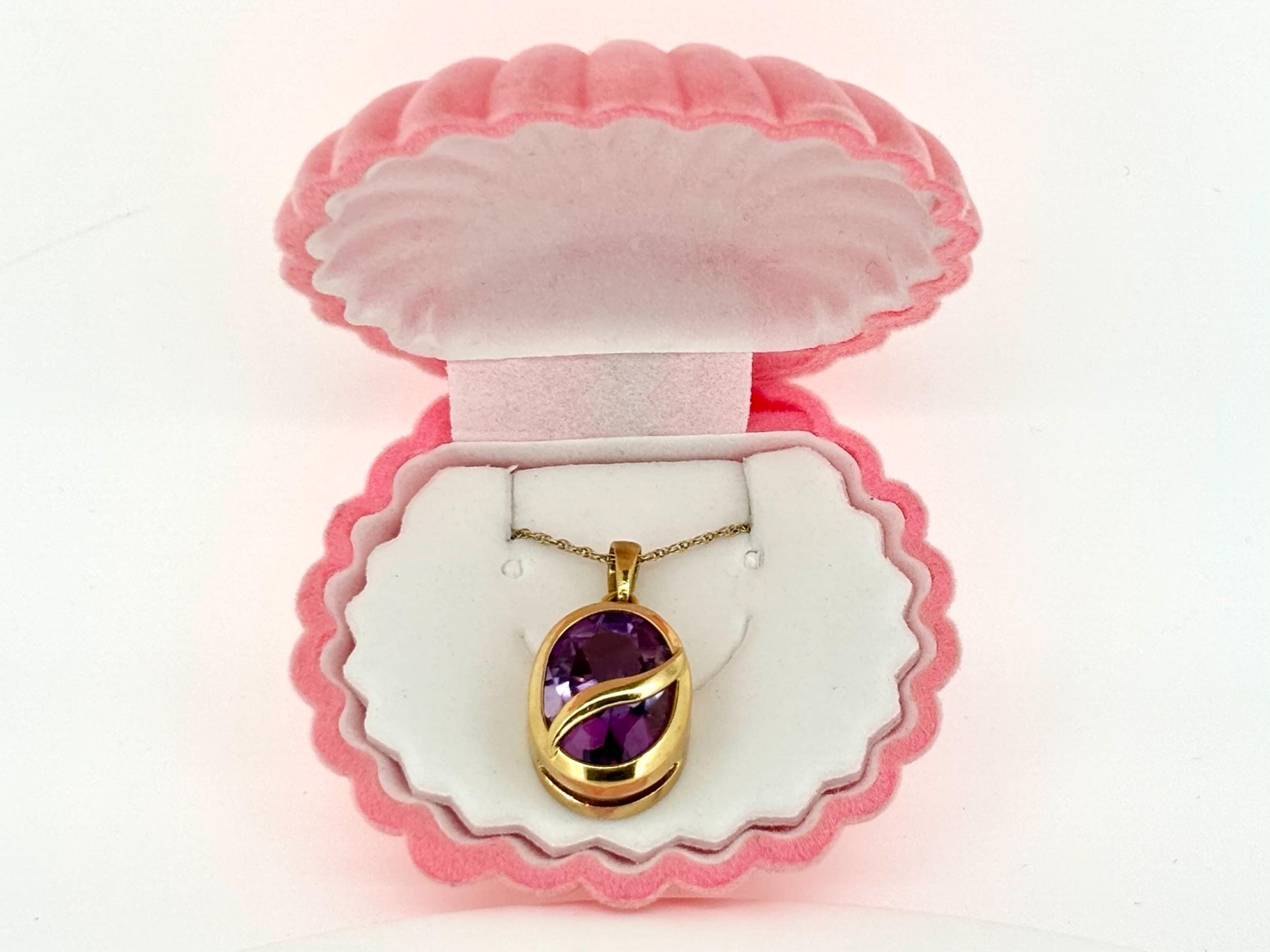 Design: Crafted in solid 14k yellow gold, this pendant showcases a genuine oval amethyst with luminous depth and color. Its bold yet graceful presence makes it a timeless expression of elegance and inner power.