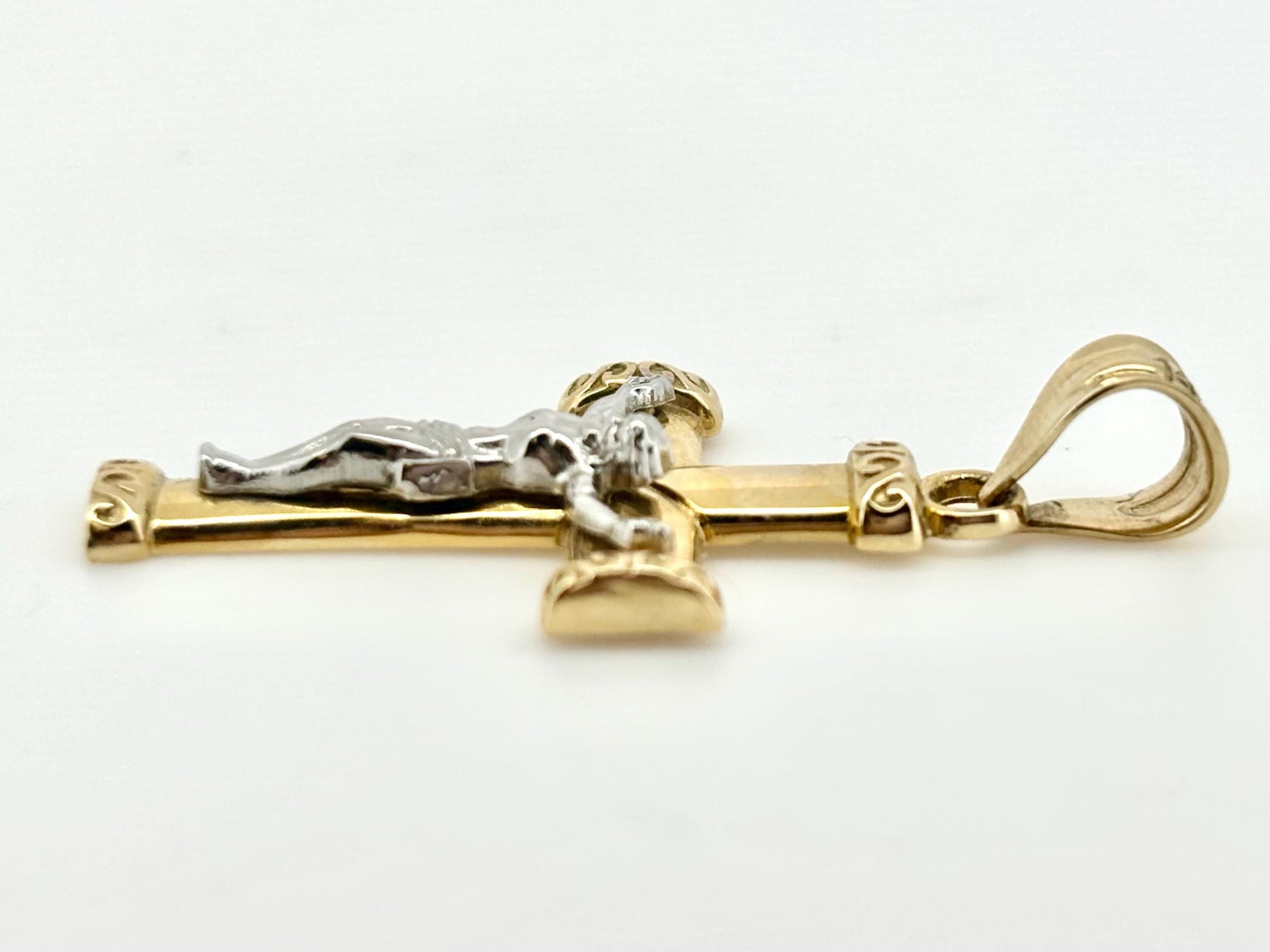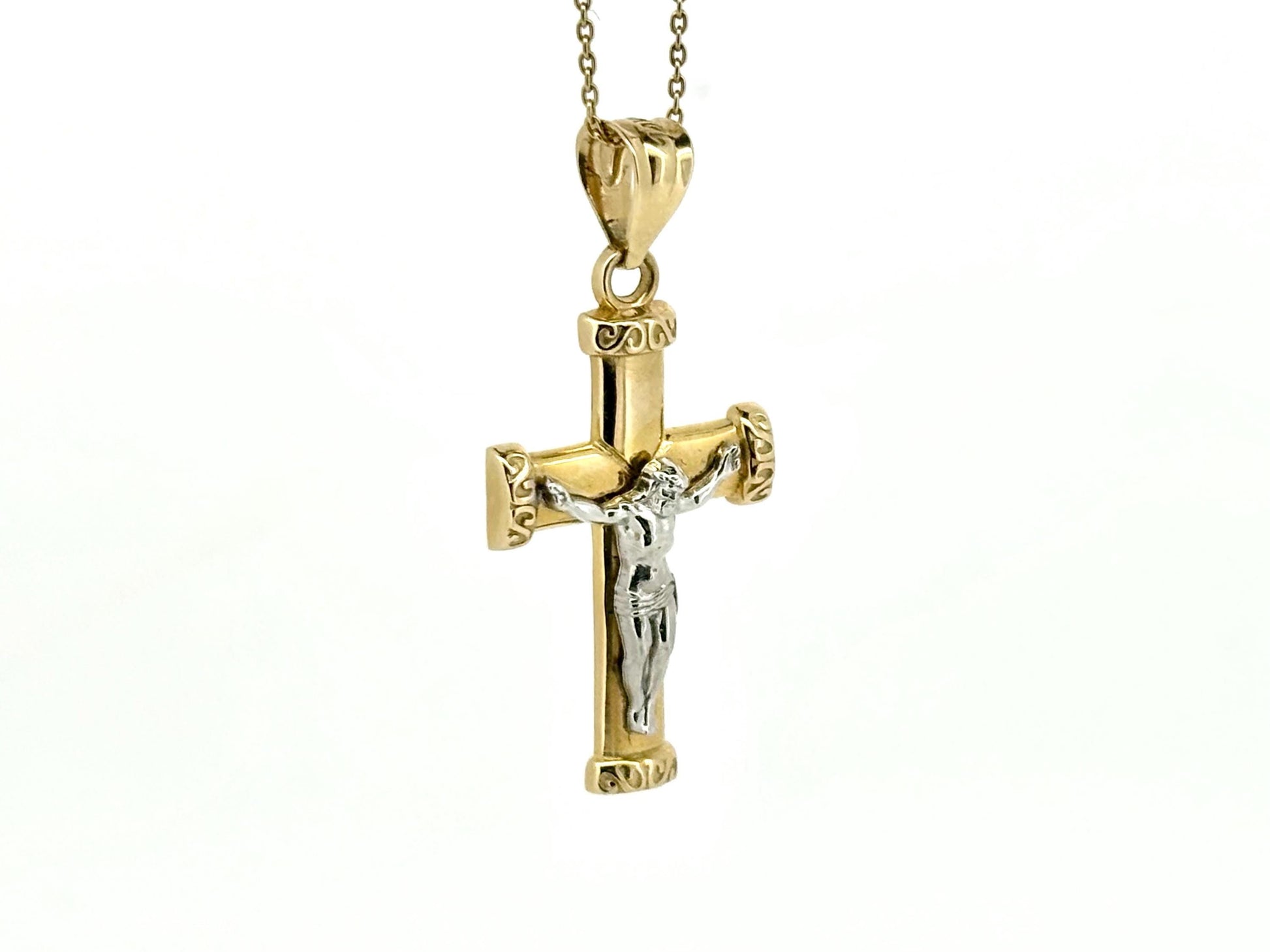 14K Solid Yellow Gold Cross Necklace Jesus Christ Pendant Giant Elegant Christian Gift for her Chritian Gift for Wife Christmas Gift