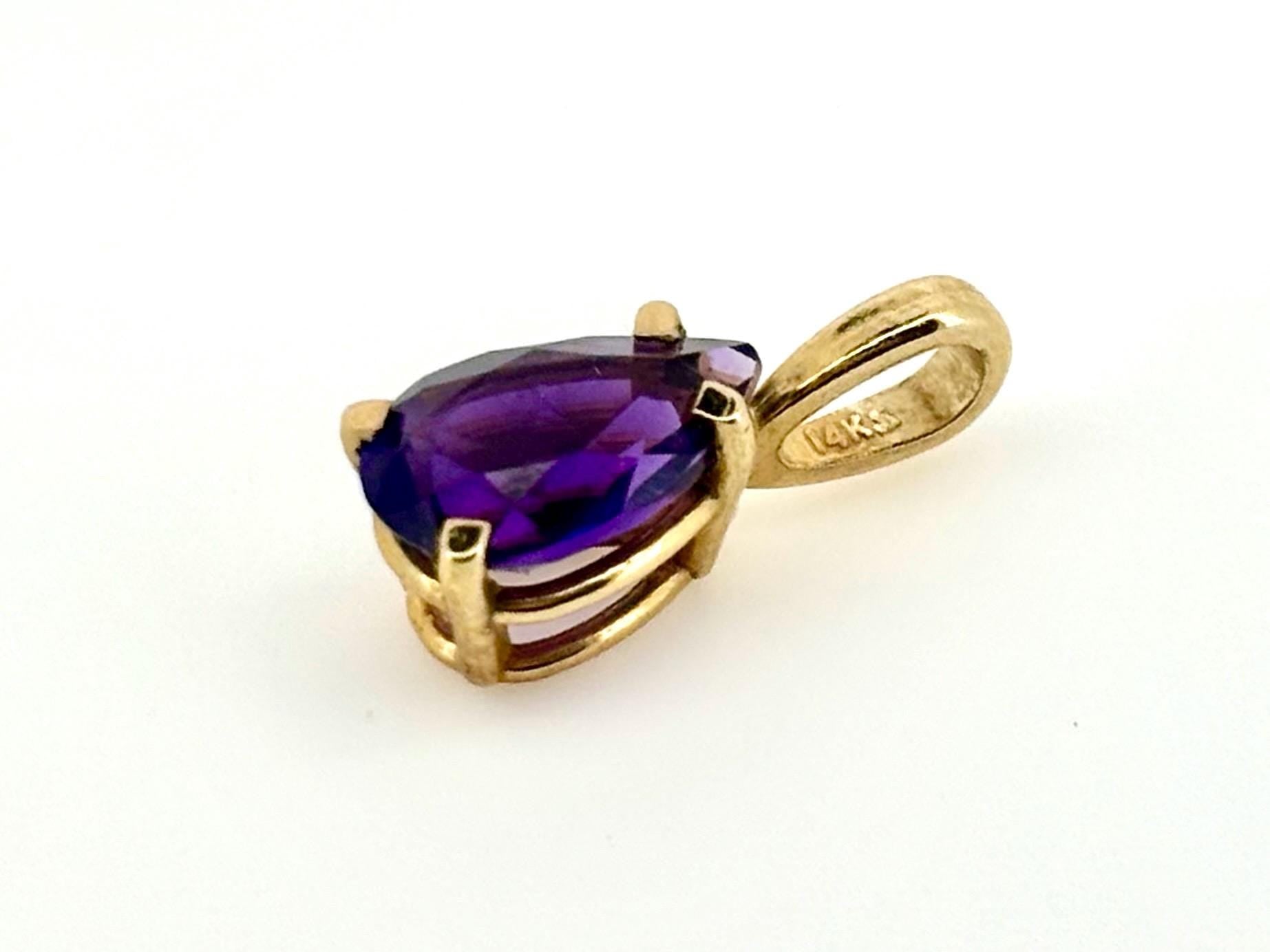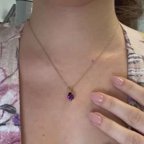 14k Solid Yellow Gold Pear Amethyst Pendant, February Birthstone, Amethyst Necklace, Birthday Gift For Her, Anniversary Gift, Healing Stone