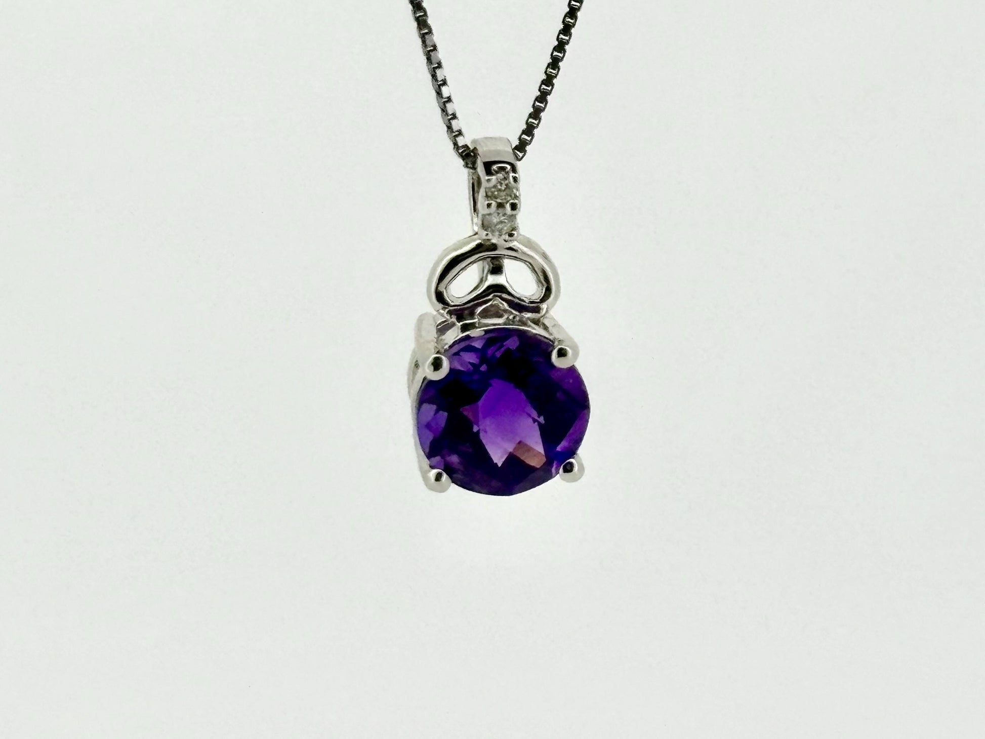 14K White Gold Amethyst Pendant With Diamond Necklace February Birthstone Gift, Amethyst Nexklace, Birthday Gift for Her