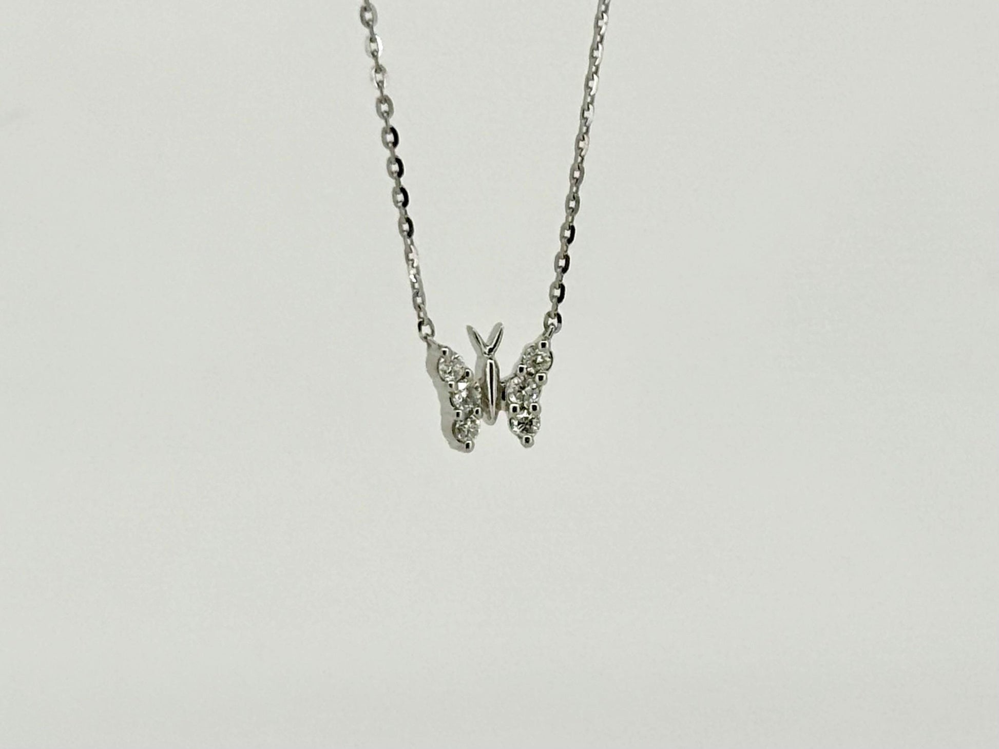 14K White Gold Diamond Butterfly Pendant Necklace 1.3g, Gift for Her, Nature-Inspired Jewelry, For girlfriends, Birthday and Surprise gift.