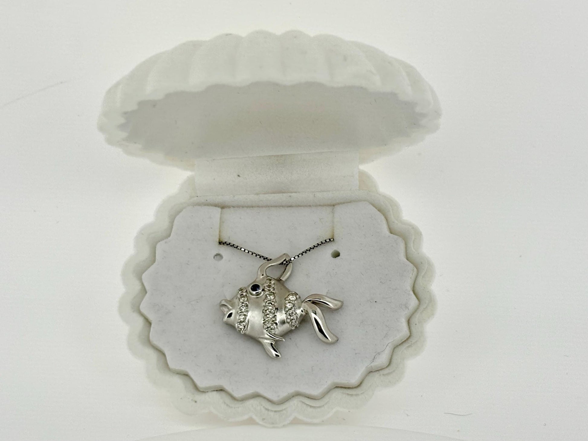 14K White Gold Fish Pendant, Fish Necklace Diamond Necklace Sapphire Pendant Birthday Gift For Her For mom Anniversary Gift Christmas Gift