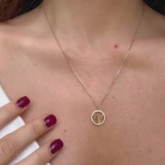 Adorable Butterfly Necklace 14K Gold Plated 925 Sterling Silver CZ Stone Tarnish Free with chain Gift for Her Dainty Necklace for Mom
