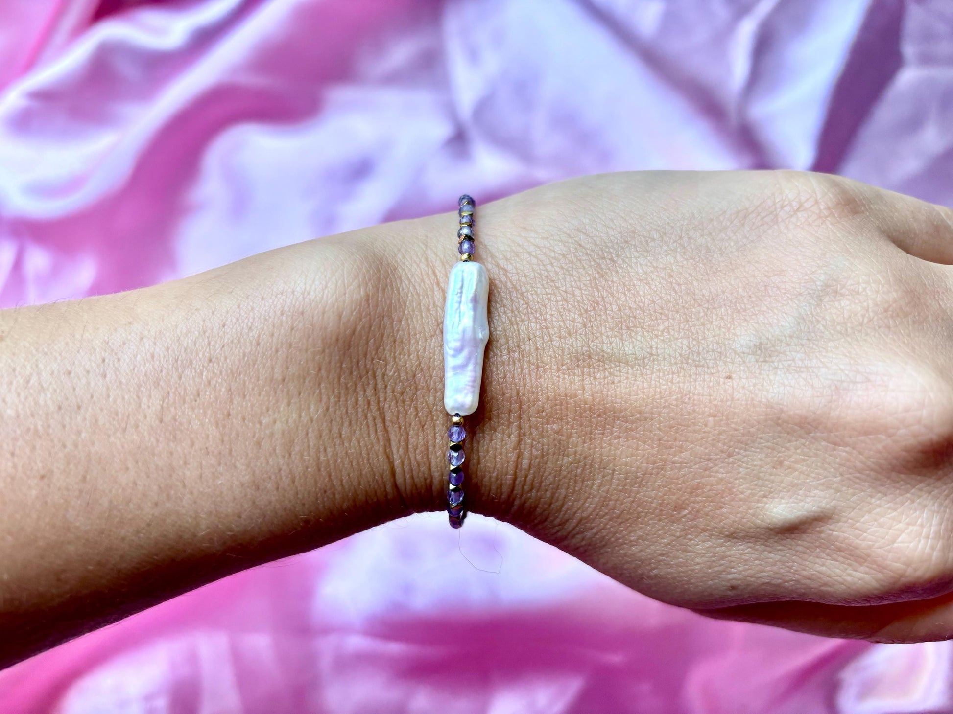 Pearls: 1 genuine baroque shape natural fresh water white pearl is used to make this wonderful bracelet. Please keep in mind that since God creates everything uniquely beautiful, there will be slight differences in shape and color between these natural pearls. Still, I always try to choose the most compatible ones.