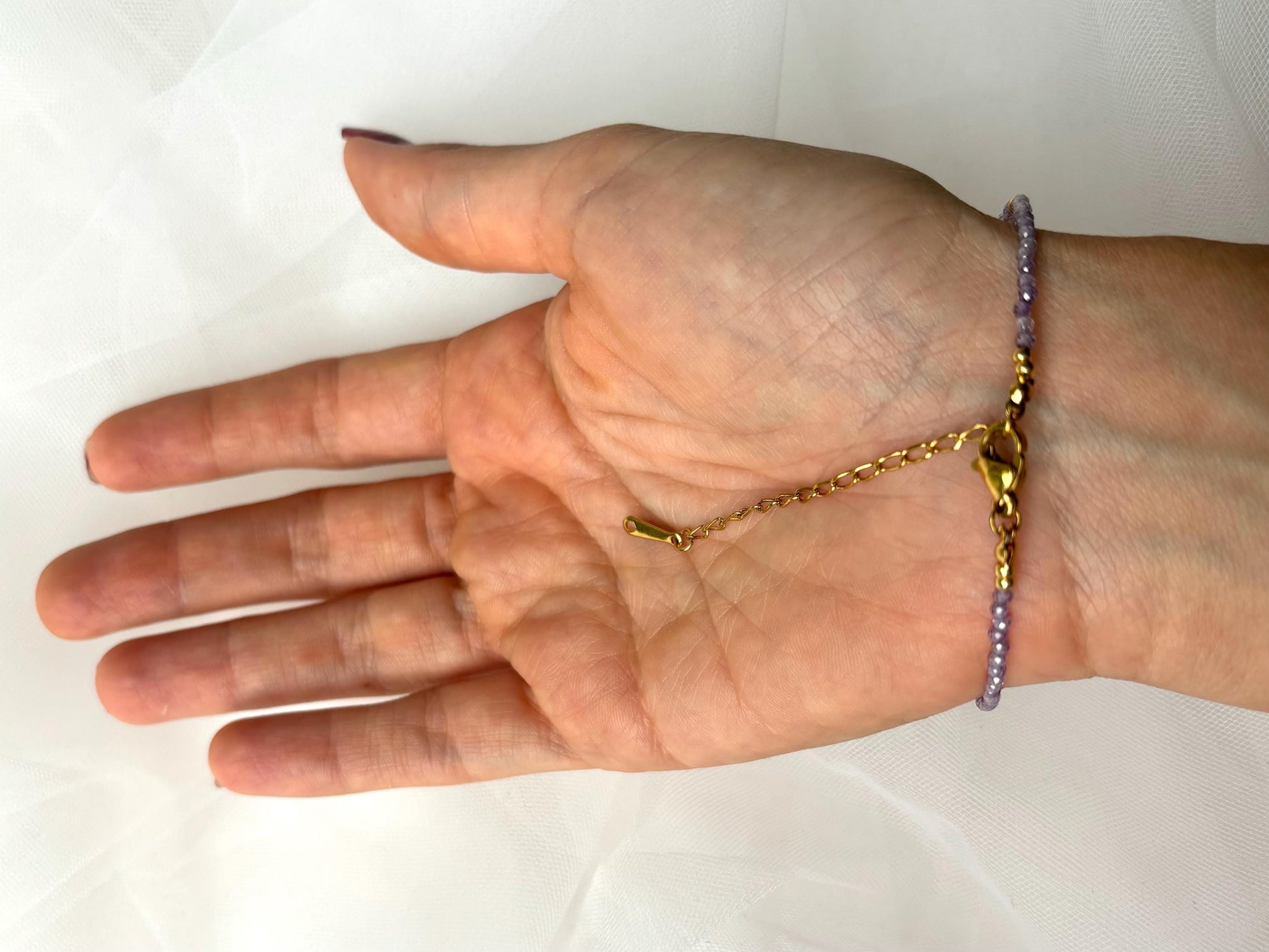 Bracelet: This beautiful stainless steel bracelet is tarnish resistant because of its material. Bracelet lenght is approximetly 9,5 inches(241 millimeters) when left open. It is adjustable to any wrist with a long chain. Genuine natural amethyst beads are used to make this beautiful bracelet.