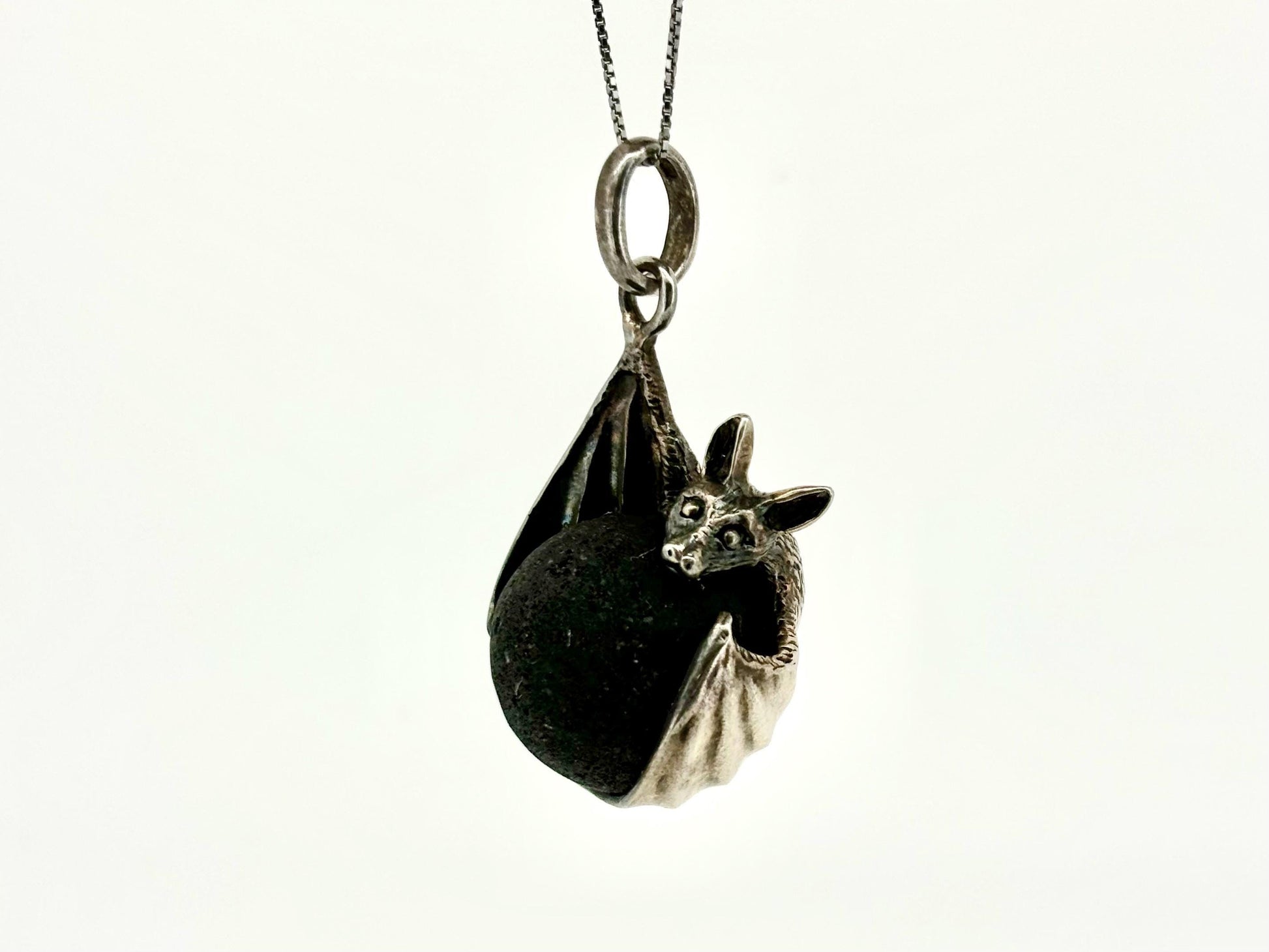 Bat Necklace Bat Pendant Halloween Necklace Vampire Costume Jewelry Lava Stone Pendant Witch Jewelry Witch Pendant Spooky Season Jewelry