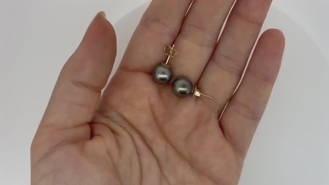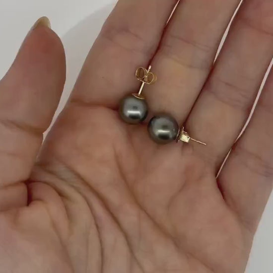 Black Tahitian Pearl Earrings Gold Studs Pearl Studs, 14K Solid Gold Elegant Everyday Earrings Jewelry Gift for Her