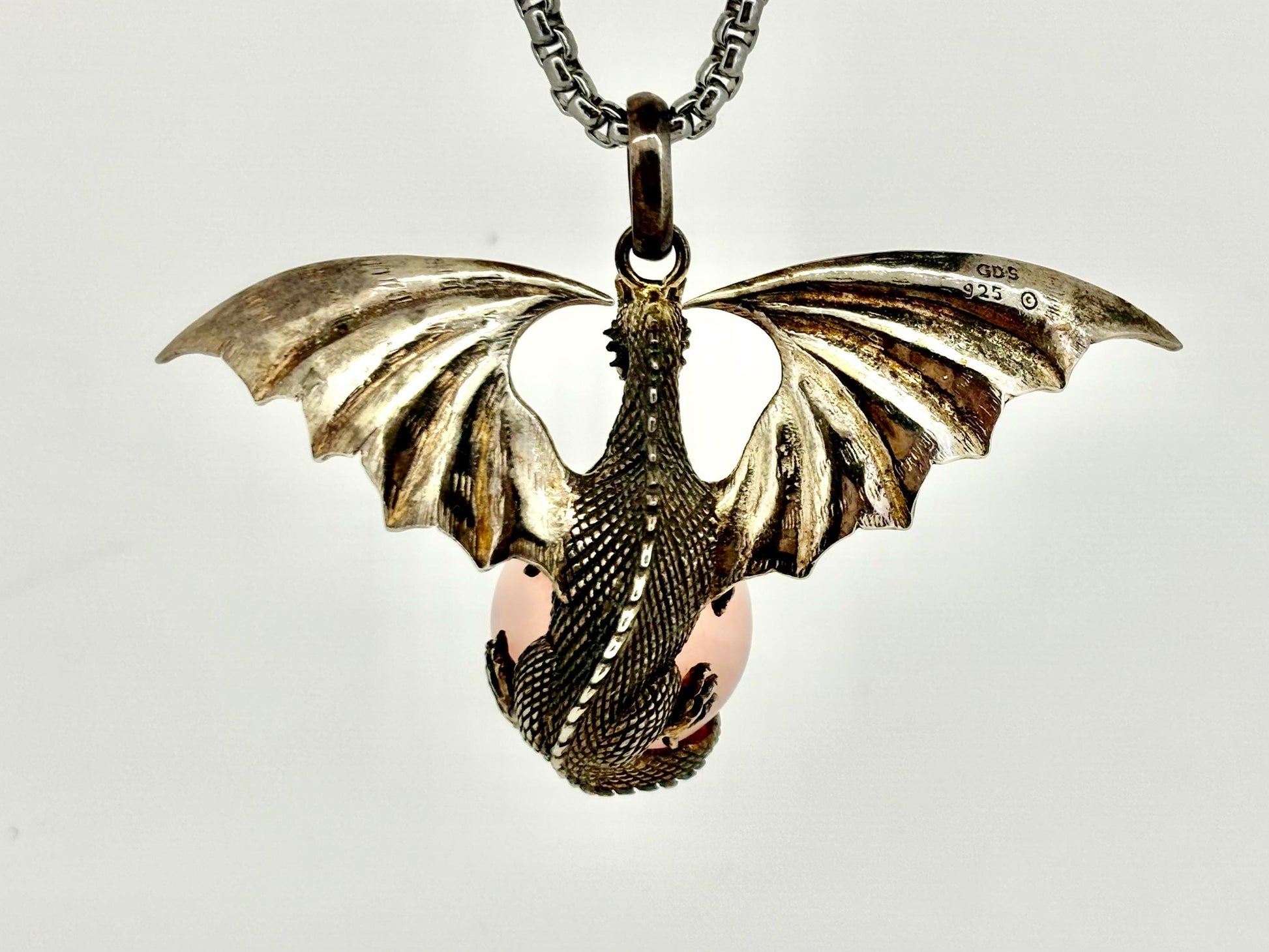 Dragon Necklace Dragon Pendant Halloween Necklace Costume Jewelry Rose Quartz Pendant Witch Jewelry Witch Pendant