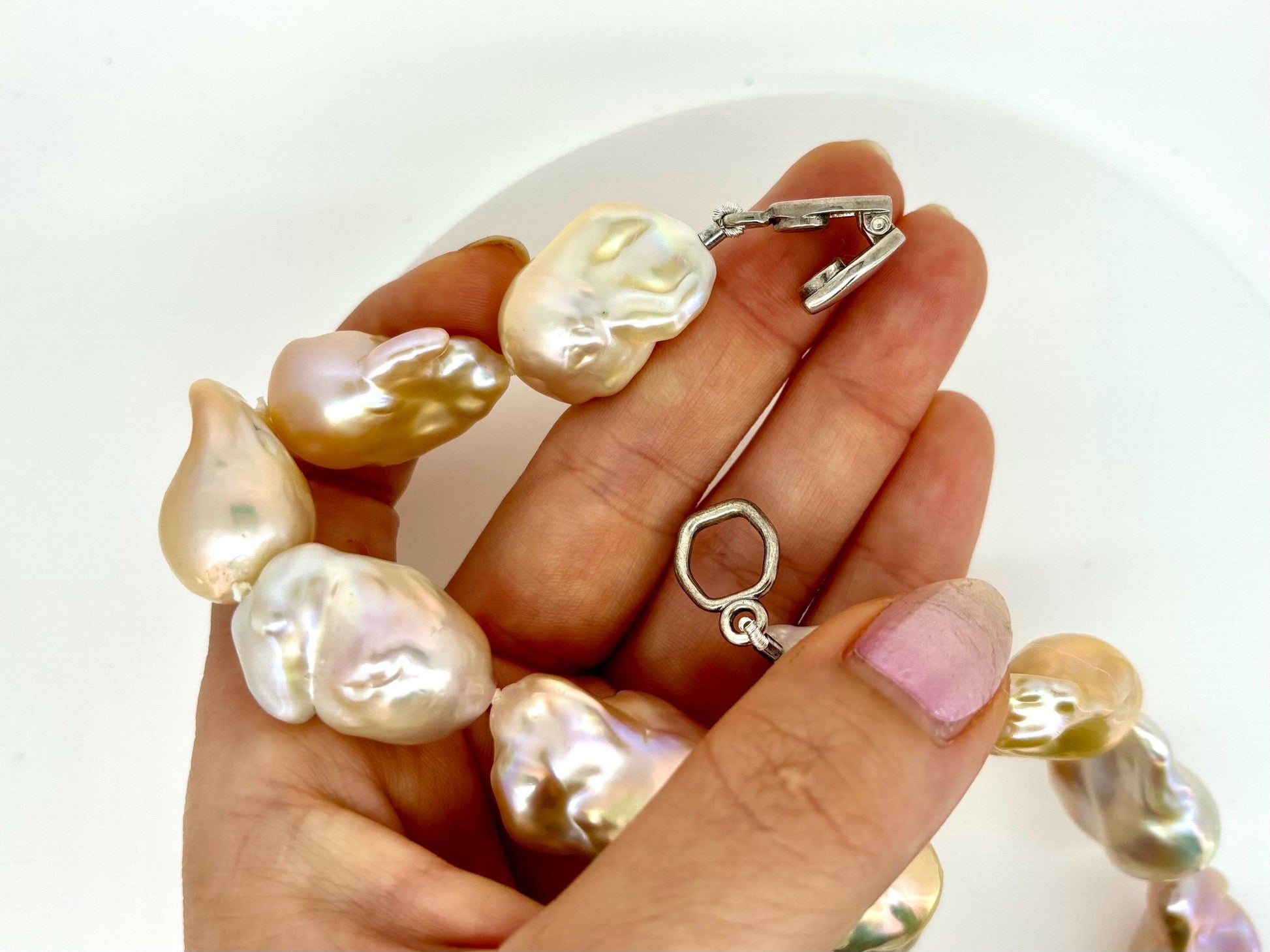 Genuine Natural Baroque Pearl Necklace 925 Sterling Silver Magnet Closure Elegant White Pearl Necklace Birthday Gift for Her Gift for Mom