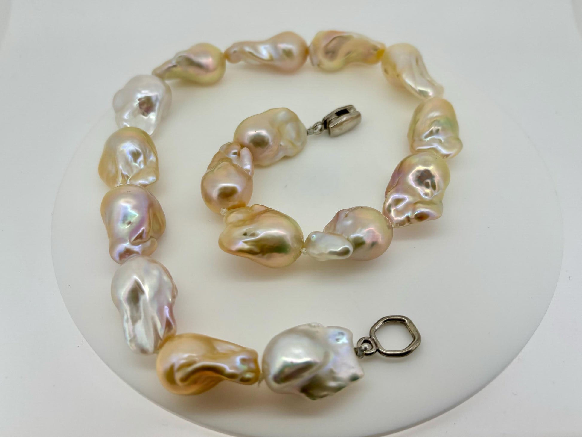 White baroque pearls symbolize individuality, beauty in imperfection, and the grace of natural forms. Their organic shapes and soft, luminous glow reflect the gentle rhythm of the sea and the uniqueness of every journey. These pearls also represent purity, wisdom, and new beginnings making them a meaningful gift for life’s heartfelt and authentic moments. I am very happy to send this beautiful necklace with my island blessings.
