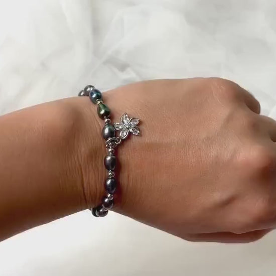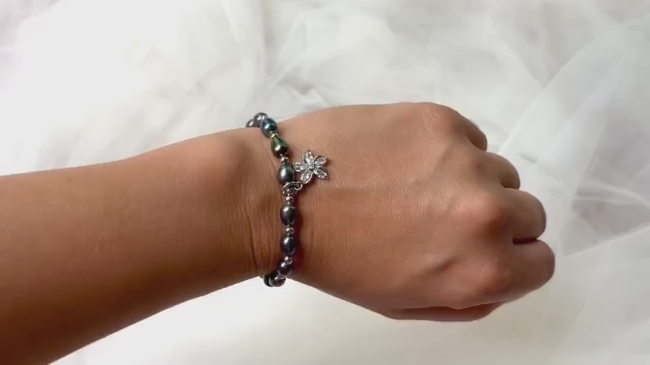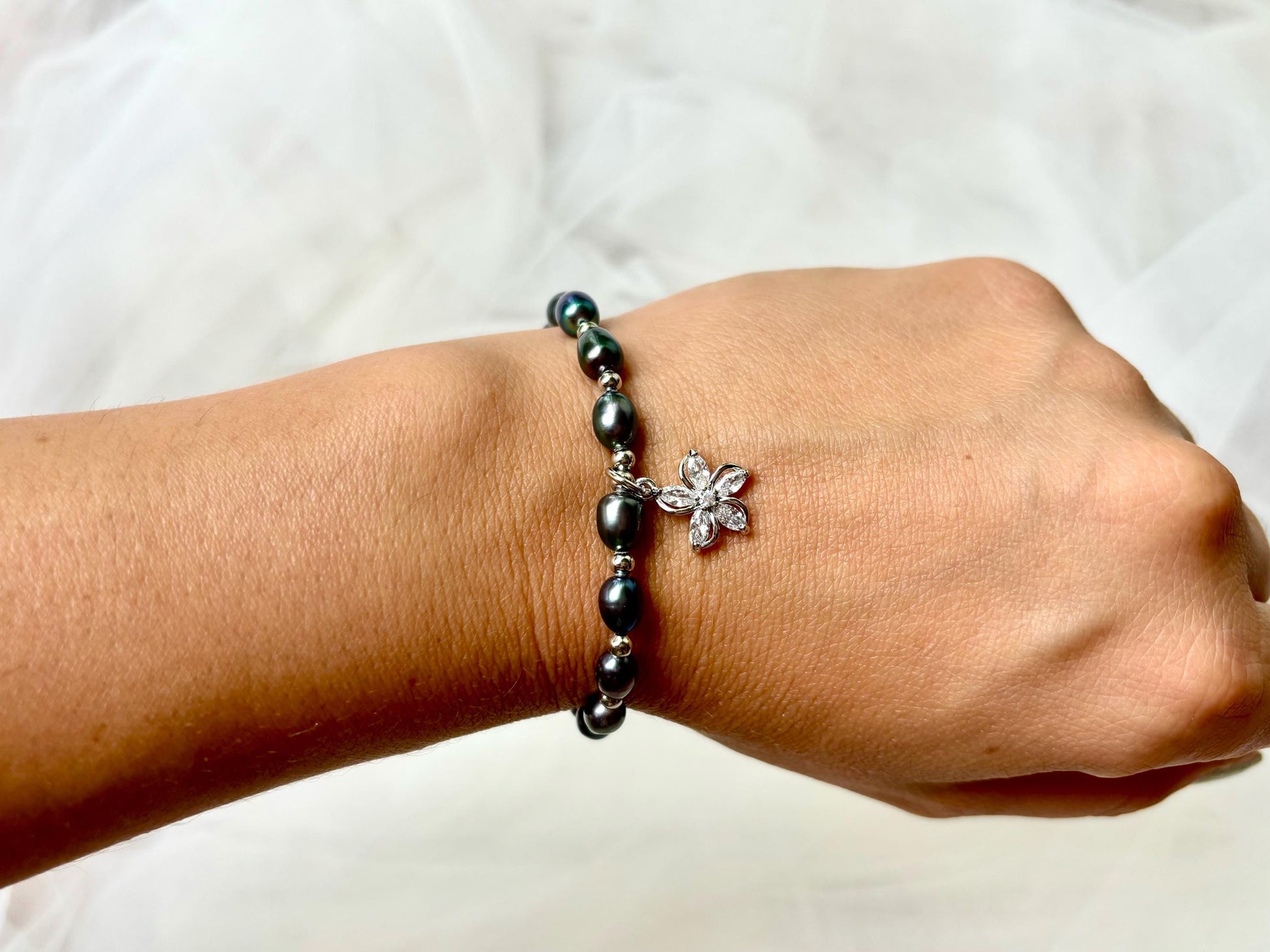 The Midnight Bloom bracelet embodies mystery, strength, and protection. Black freshwater pearls (momi ʻeleʻele) are treasured for their rare beauty and deep luster, symbolizing resilience and inner power. The silver flower charm adds a gentle touch of grace — a reminder that beauty can bloom even in the dark.