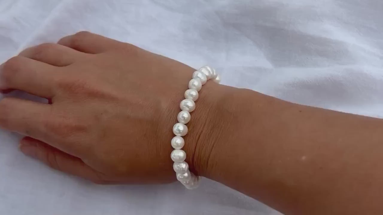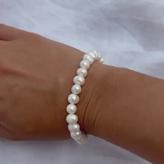 Genuine Natural Freshwater Pearl Bracelet Elastic Adjustable Gift For Her - Gift For Girlfriend - Mother’s Day Gift - White Pearl Bracelet