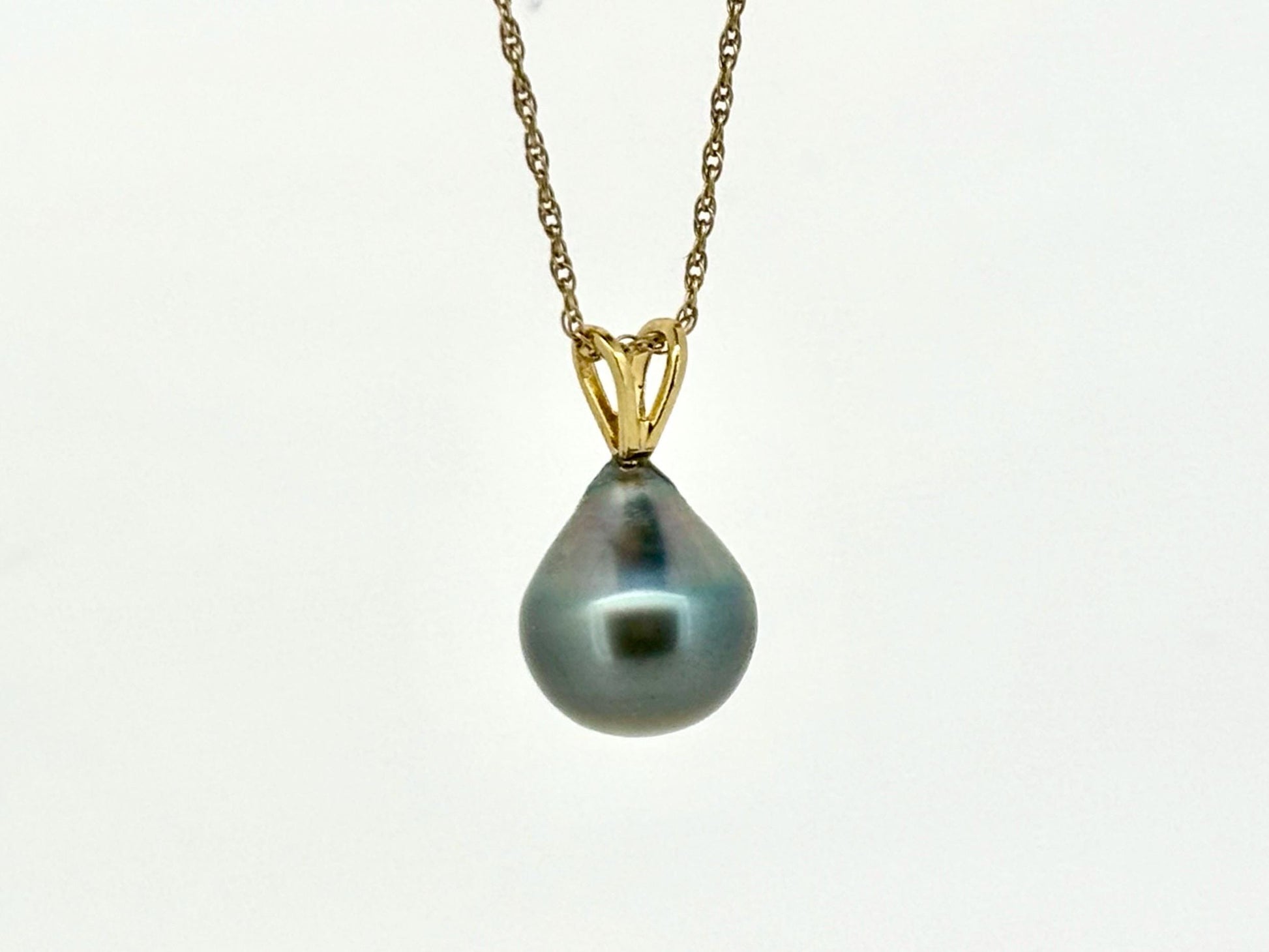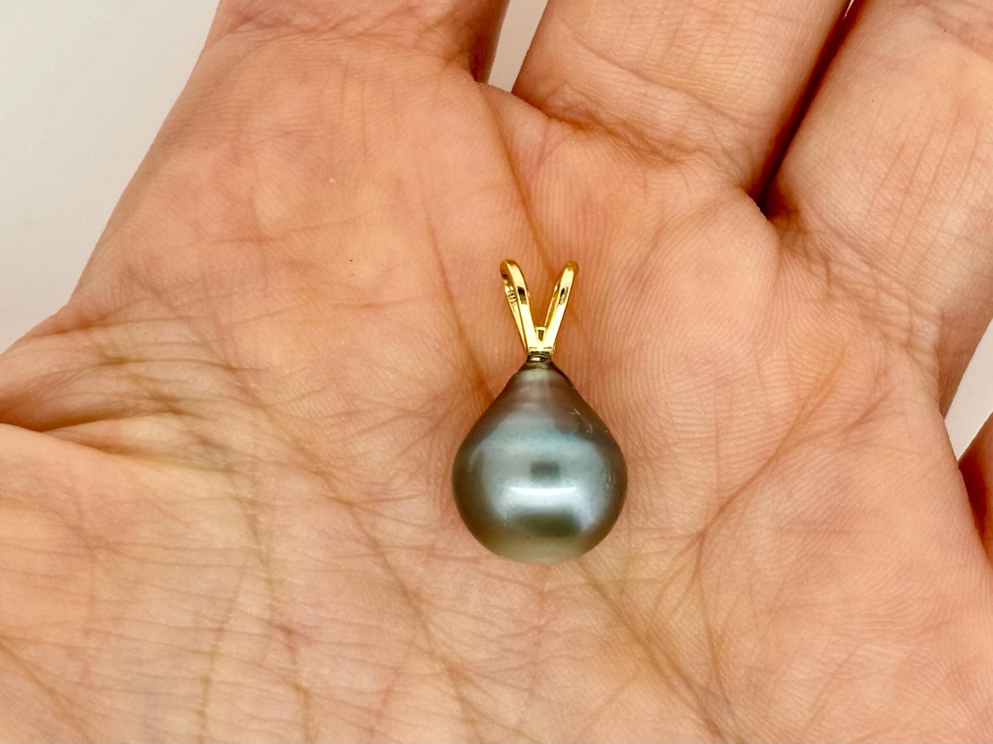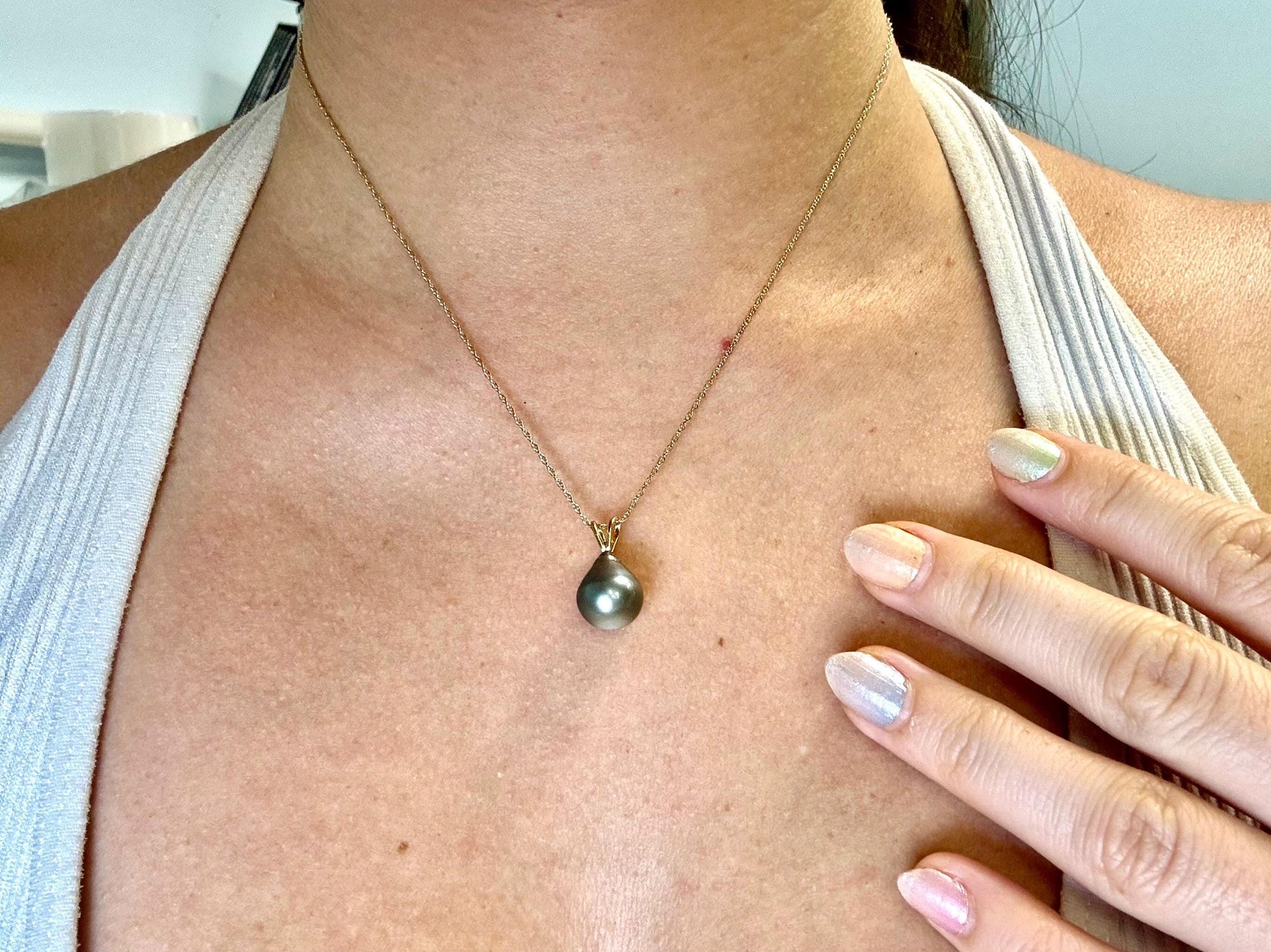 Genuine Natural Tahitian Pearl Necklace Ocean Blue Pearl Pendant with 14K Gold Chain Black Pearl Necklace Birthday Gift for Her Gift for Mom