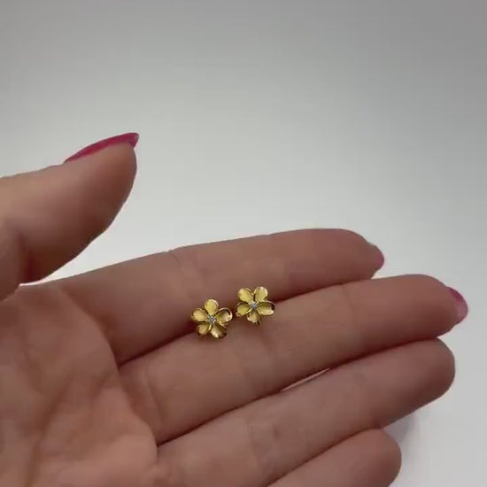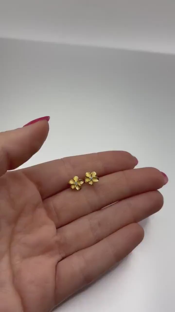 Hawaiian 925 Sterling Silver 14K Gold Plated Plumeria Stud Earrings Cute Gift for Wife Flower Mom Girlfriend sister Stone shiny CZ