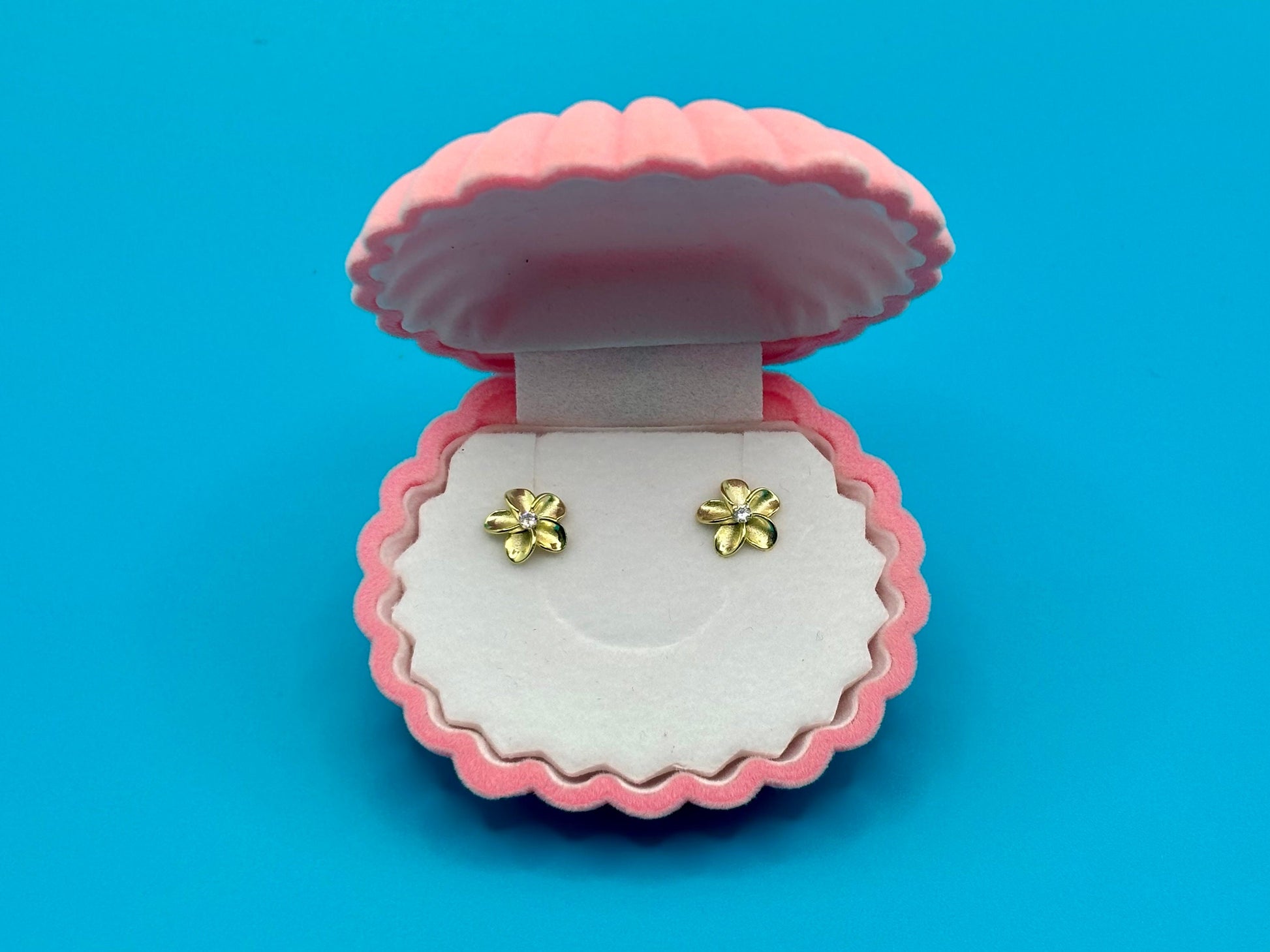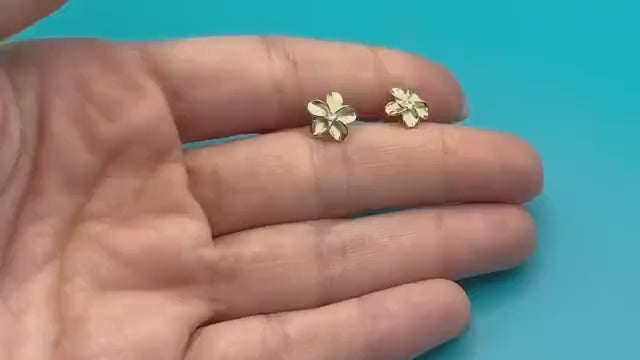 Hawaiian 925 Sterling Silver 14k Gold Plated Plumeria Stud Earrings Cute Gift for Wife Flower Mom Girlfriend sister Stone shiny CZ